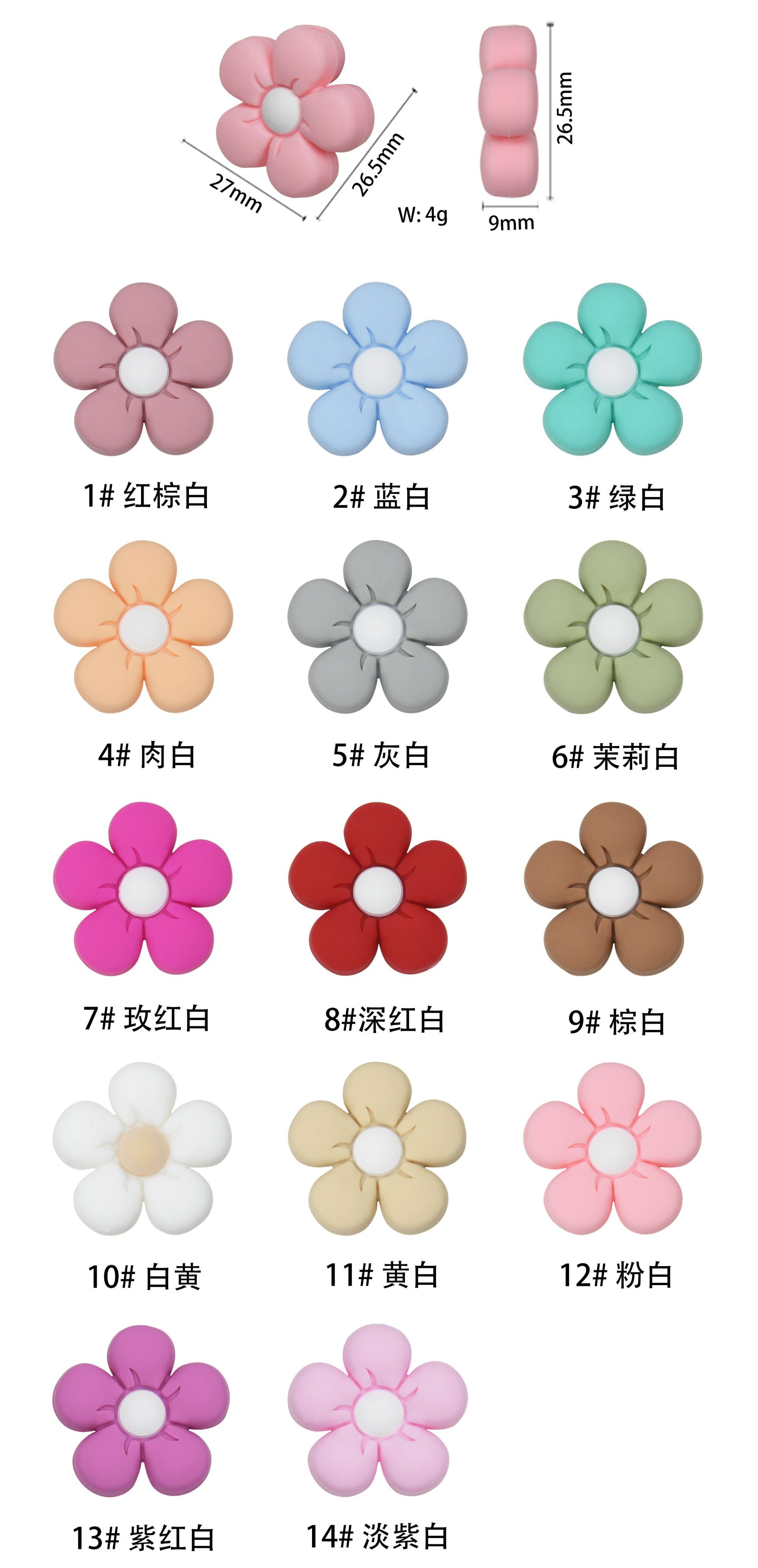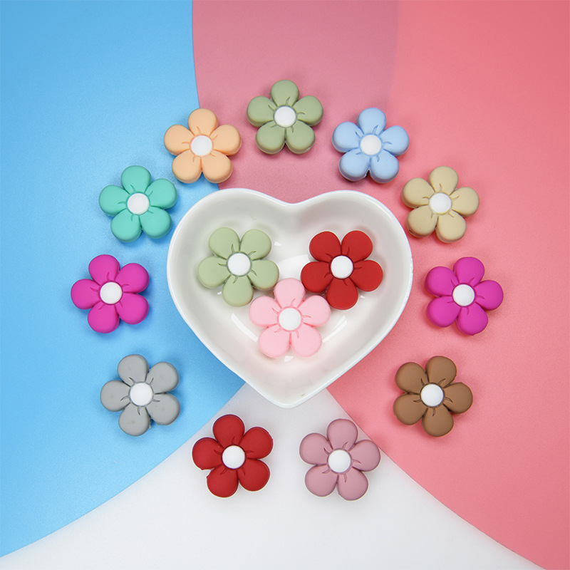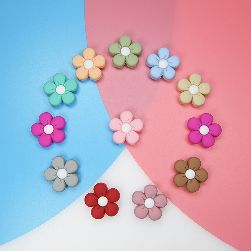 硅胶珠子婴儿牙胶彩色花朵手工DIY宝宝奶嘴链配饰防掉链饰品散珠