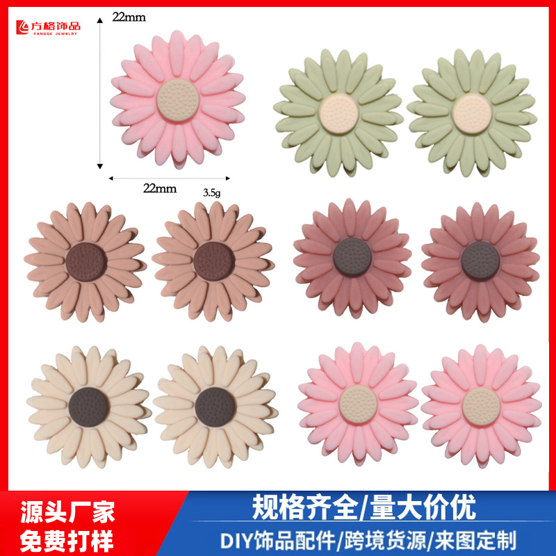 婴儿牙胶 22mm雏菊硅胶珠 食品级磨牙珠diy创意奶嘴钥匙链配件