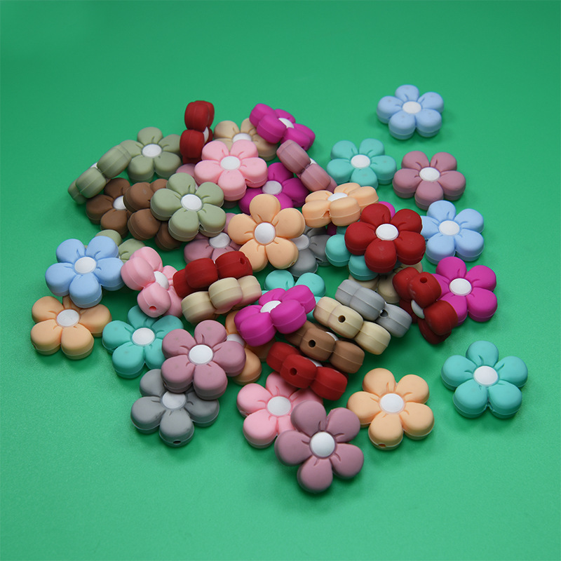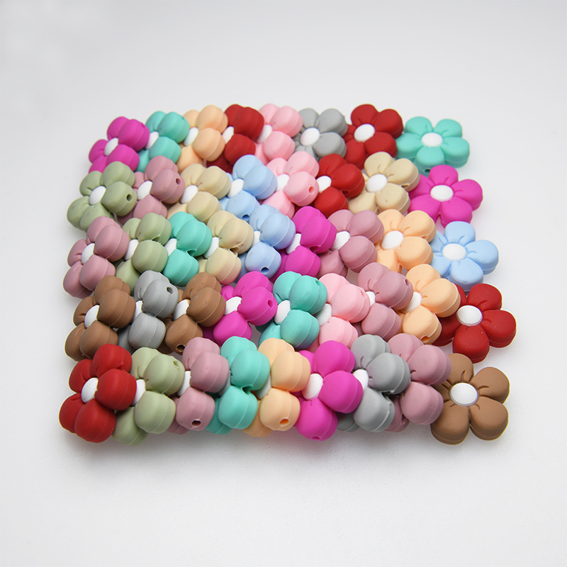 硅胶珠子饰品新款花朵串珠母婴硅胶DIY手工串珠项链散珠牙胶批发