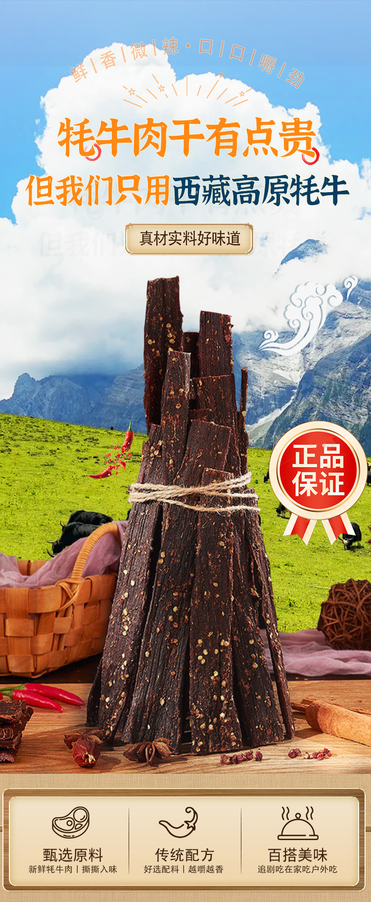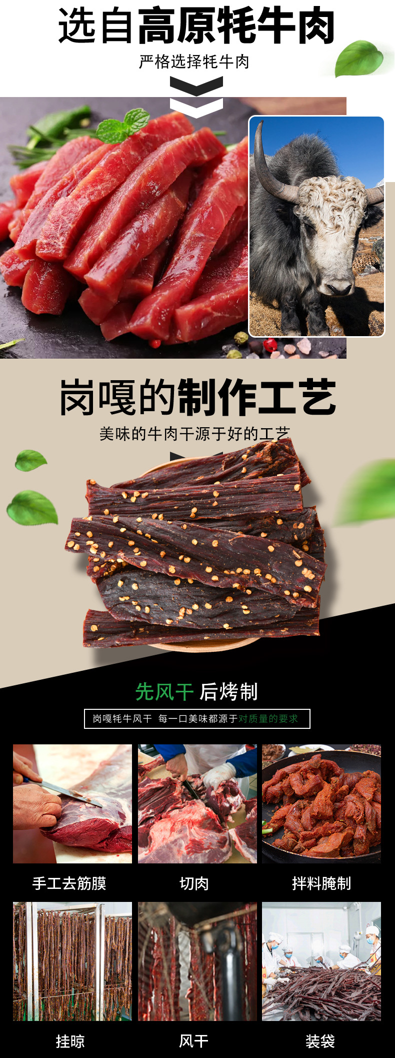 原料和配料 牦牛肉、盐等