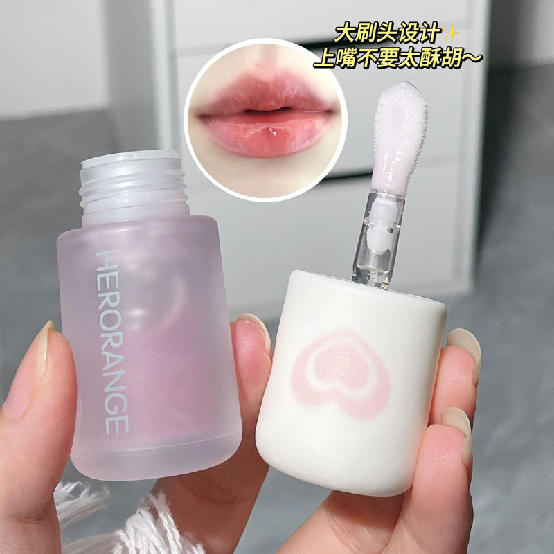 HERORANGE~リップリップグロス、透明感のあるリップグロス、重ね塗りで柔らかくふっくら唇、リップラインを薄く、女性用透明リップオイル