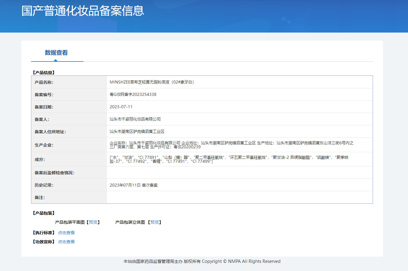 非特化妆品备案证号 粤G妆网备字2024291367