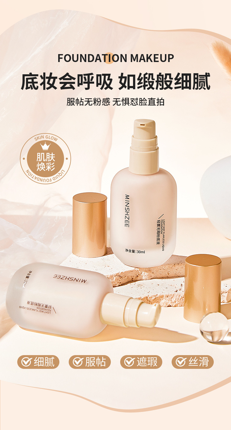 茗希芝粉底液控油遮瑕持久不易脱妆干皮油皮不易卡粉底液霜女跨境