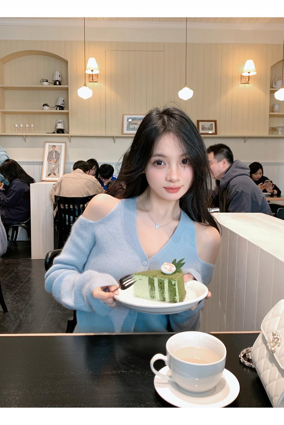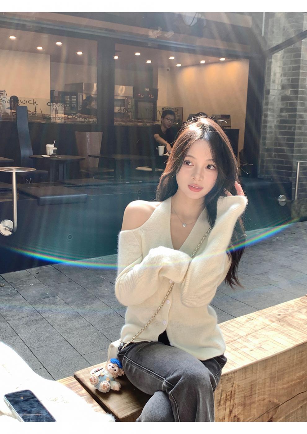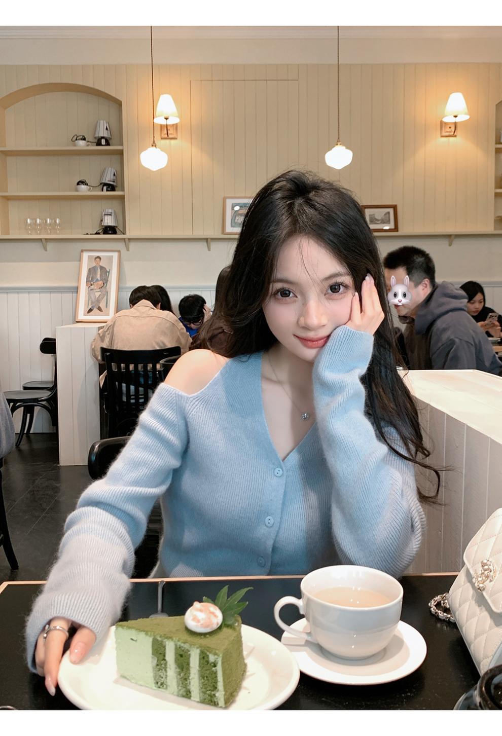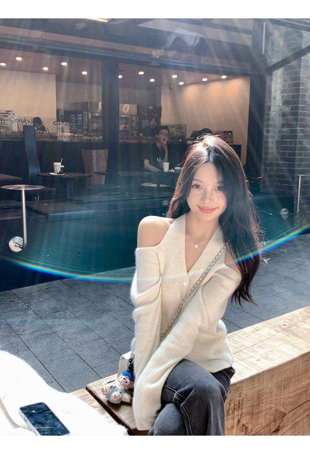 韩系小众露肩挂脖绑带针织衫女2025新款秋季修身内搭开衫毛衣女