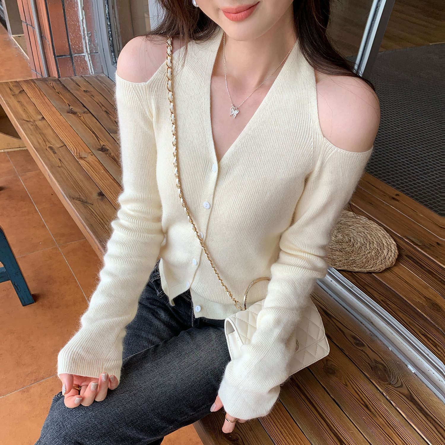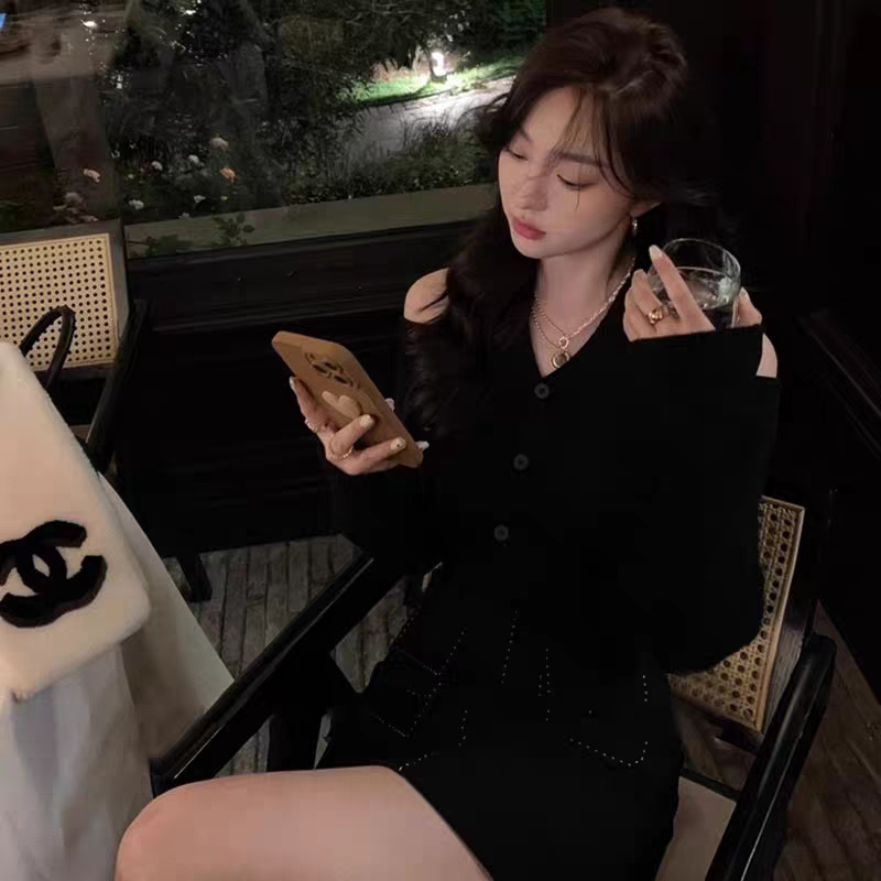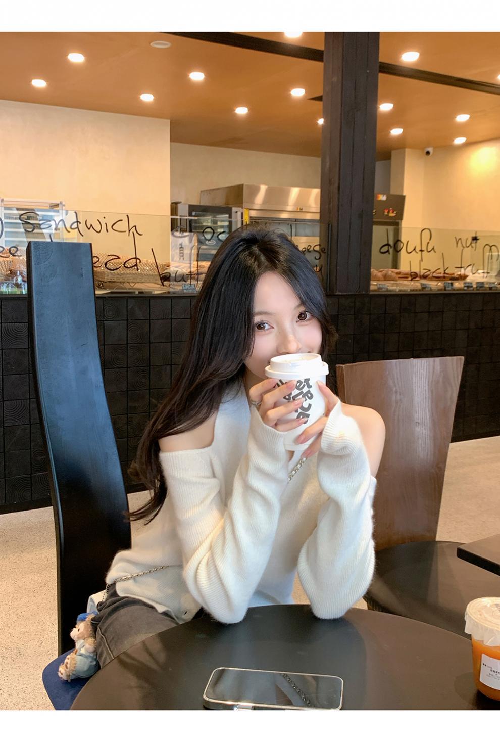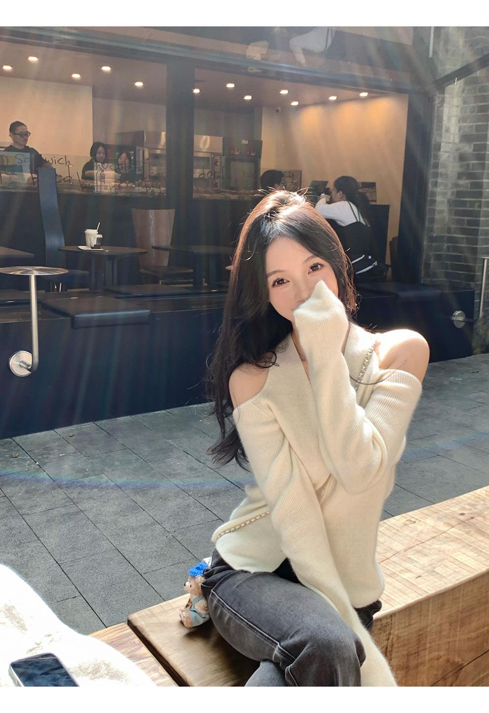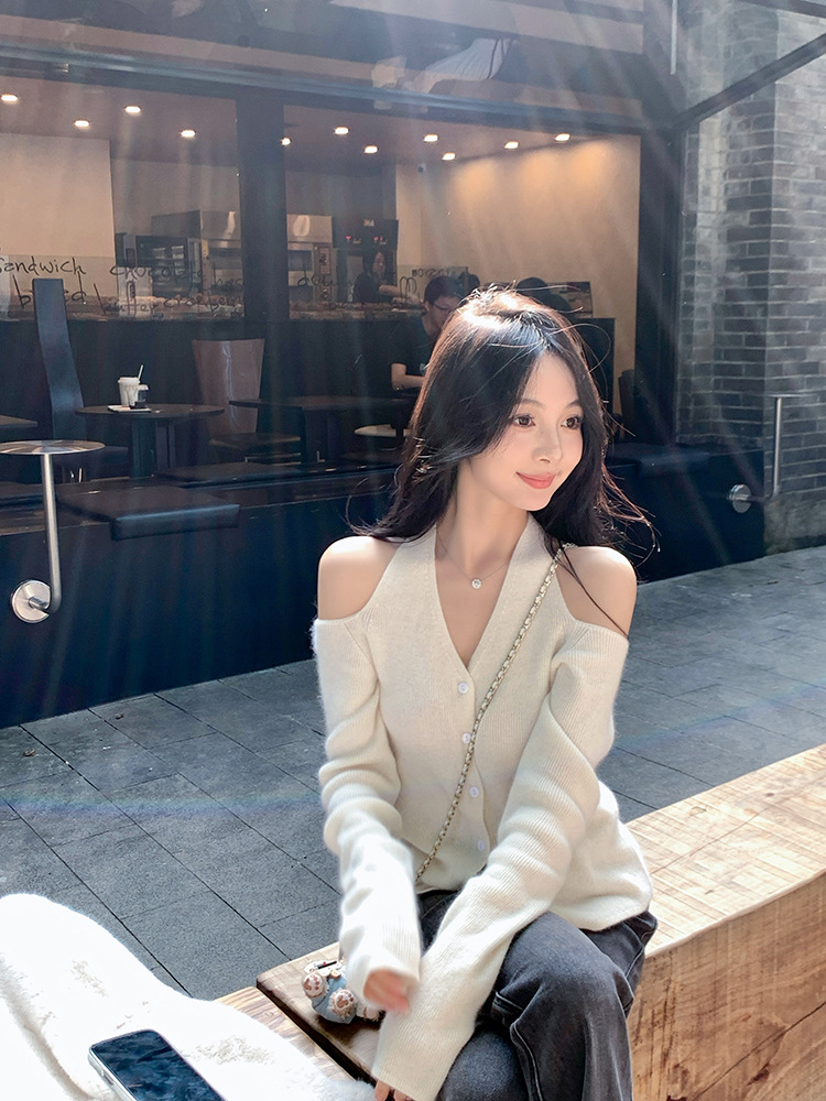 欧货慵懒挂脖长袖针织衫女秋季2025新款巨好看轻熟法式露肩上衣