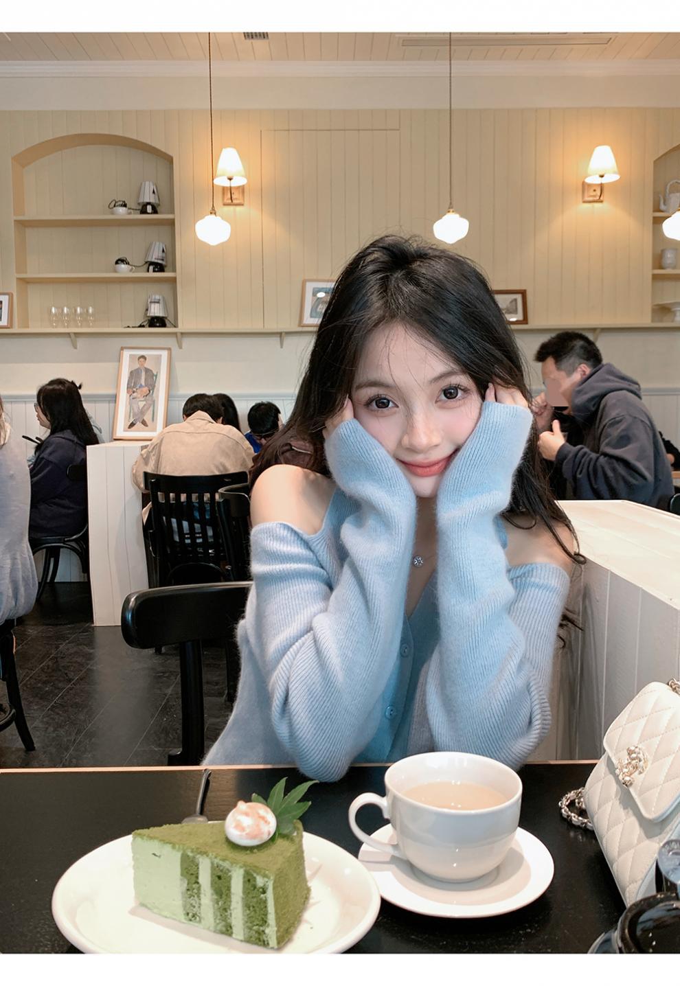 韓系の気をつけて機の気質のギャルの純粋な欲の風はフォークの単列のボタンのデザイン感をつけます。