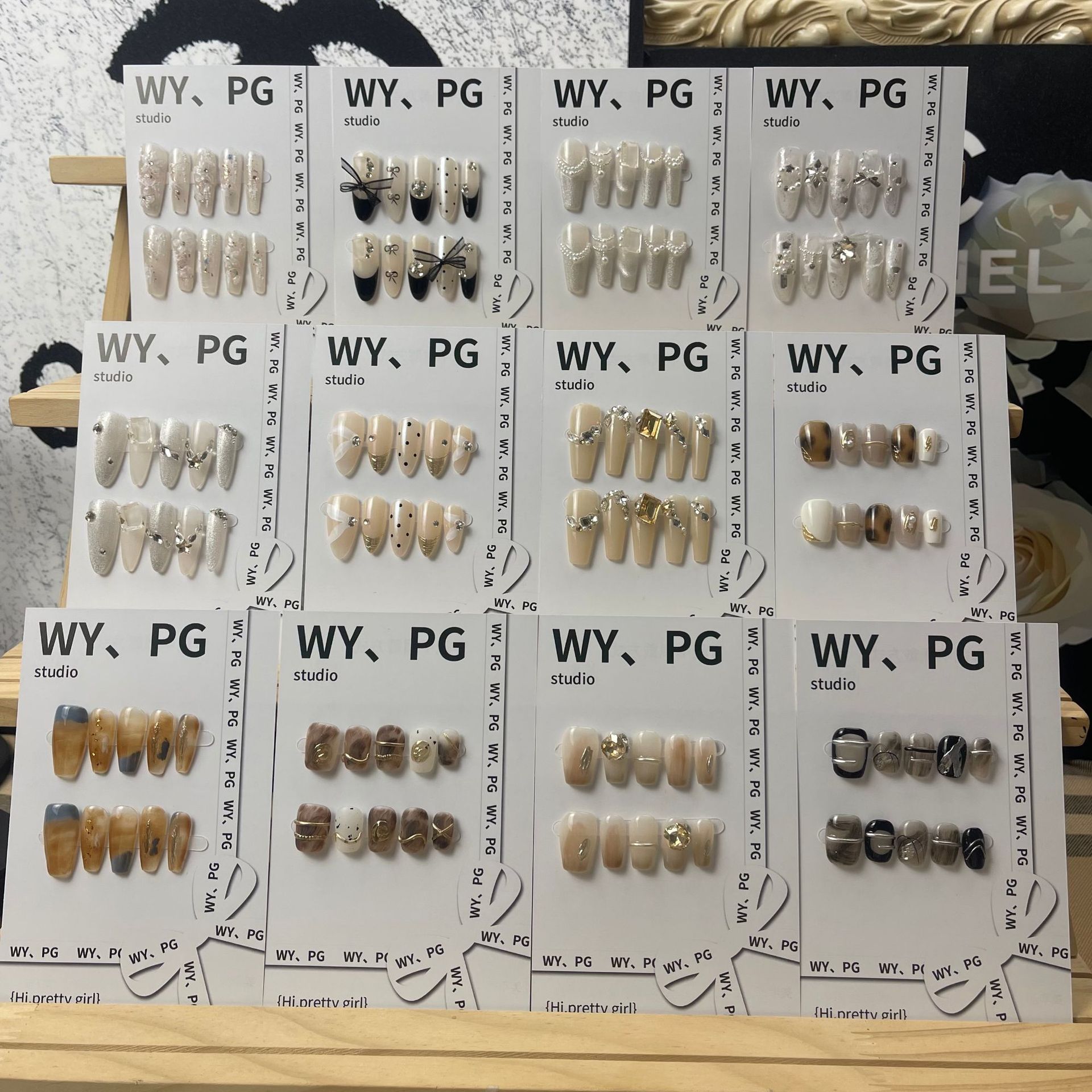 新型の純粋な手作業は甲を着て、露店のランダムなデザインを並べて、サイズを選んで、ネイルアートを組み合わせる暇がない