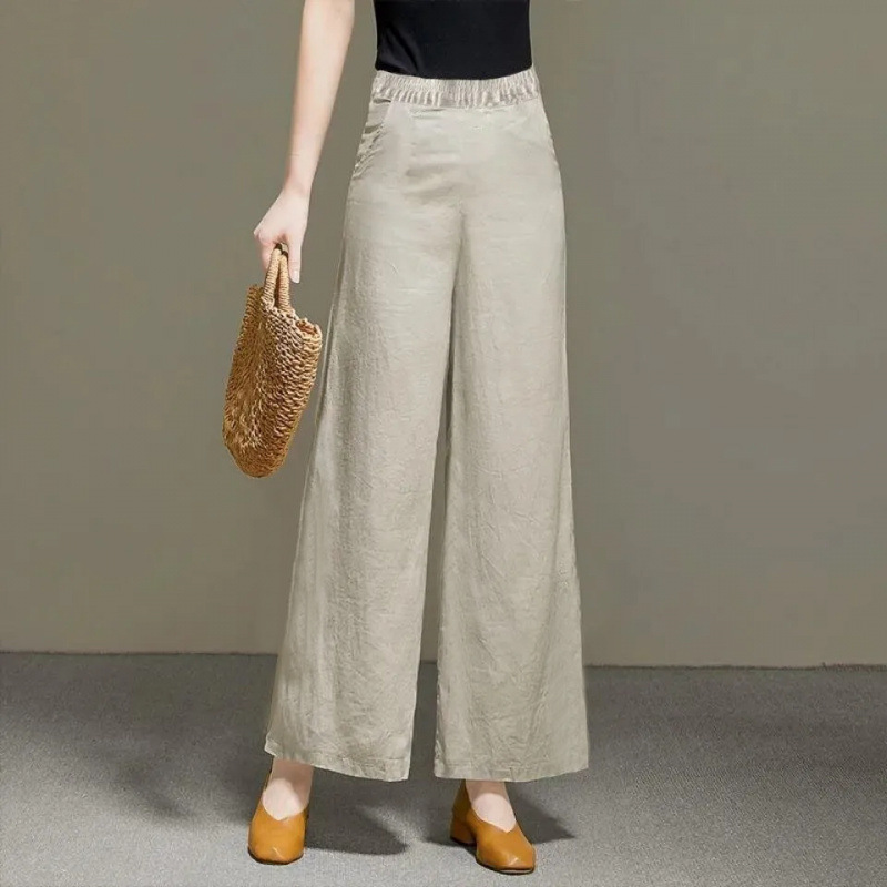 綿麻ワイドレッグパンツレディース夏薄手ゆったり大きいサイズファットママレディースパンツカジュアルハイウエストストレートリネン9点パンツトレンディ