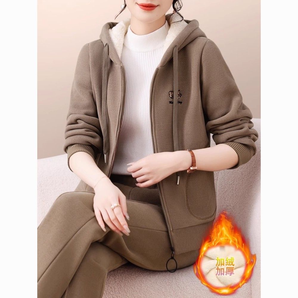 中年妈妈装外套2025新款秋冬中老年女装运动服套装加绒加厚两件套