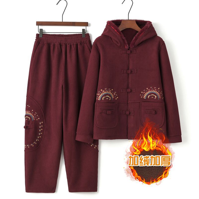 中老年秋冬妈妈装灯芯绒运动套装女冬装加绒加厚老奶奶休闲两件套