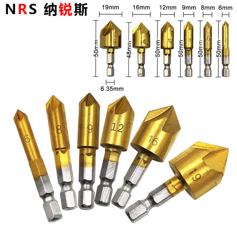 6PC五刃木工面取り器90度ストレートハンドル皿先テーパー面取りナイフ6点セットバリ取り穴拡げドリル