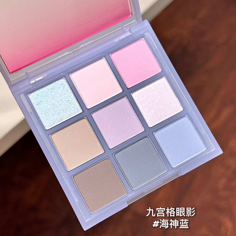 TINGPHE新款九宫格眼影盘低饱和雾蓝冷粉撞色珠光哑光清冷海神氛