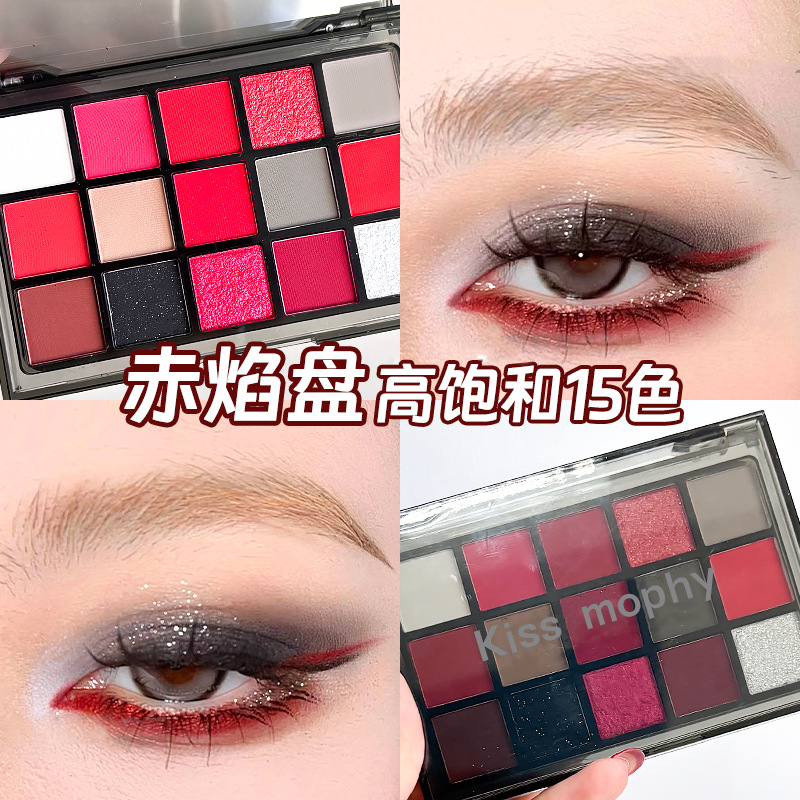 新款15色眼影盘珠光哑光烟熏妆舞台妆彩妆低饱和不晕染粉质细腻