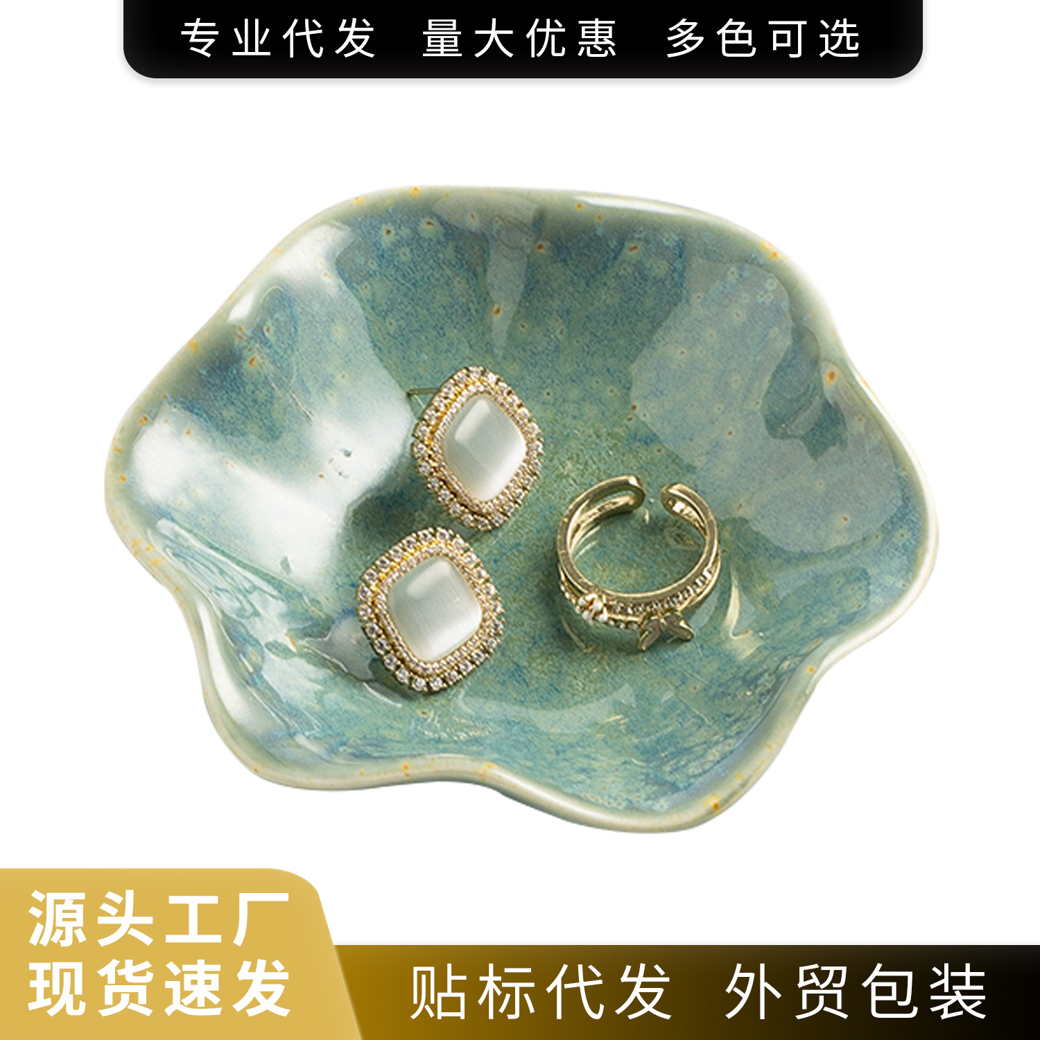 日本式窯がハスの葉皿に変わって、国境を越えた対外貿易陶磁器のアクセサリートレイが爆発したinsホーム収納盤にプレゼントを飾った