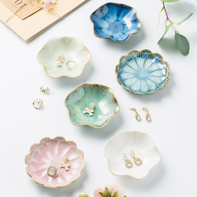 Ins陶磁器の装飾品のトレーの収納皿のアイデアの蓮の葉の皿の家庭の置物の対外貿易の装飾のトレーの窯は味の皿に変わります。