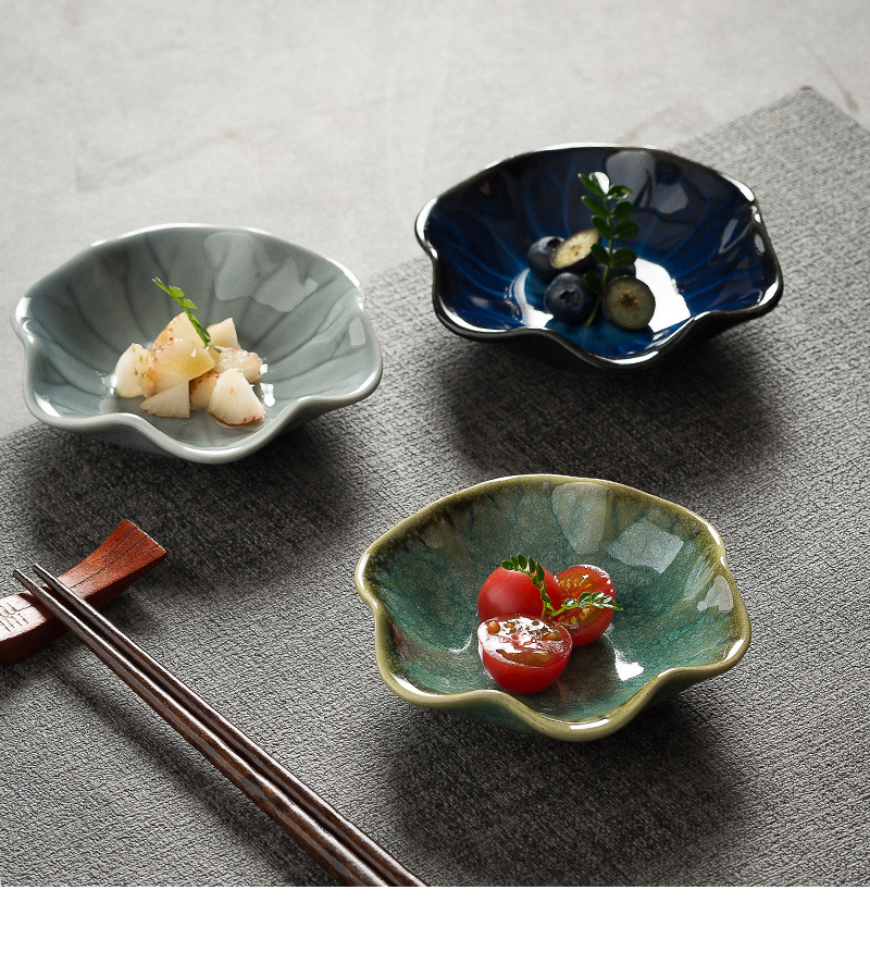 蓮の葉の陶磁器の味の皿の窯は軽食を変えて皿のホテルのレストランの鍋の味噌の皿の家庭用の搾菜の皿の酢の皿をつけます。