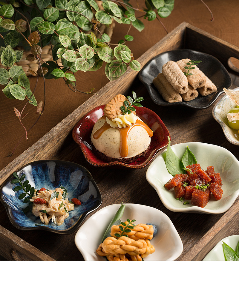 日本式料理皿創意軽食皿高級感レトロ窯変食器家庭用デザート皿