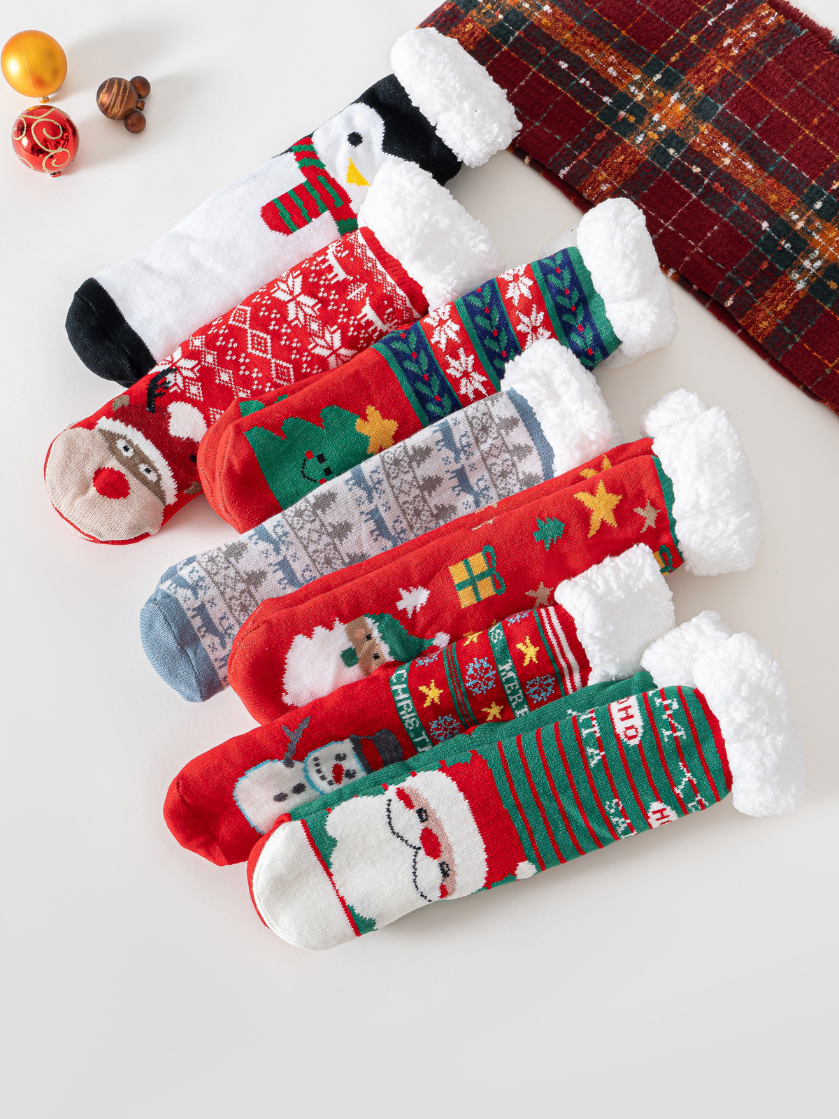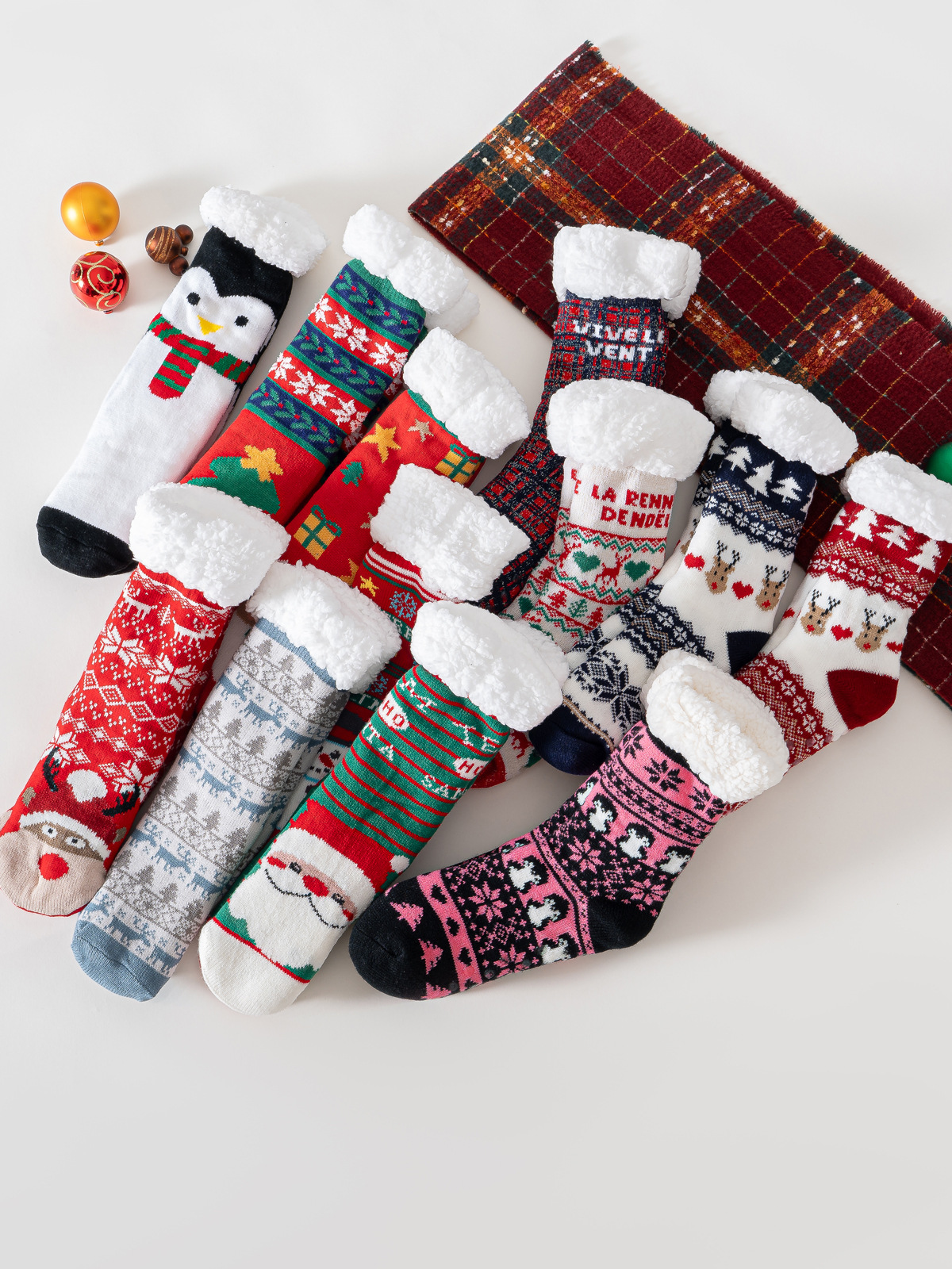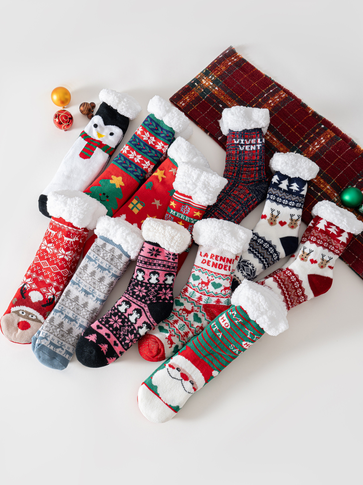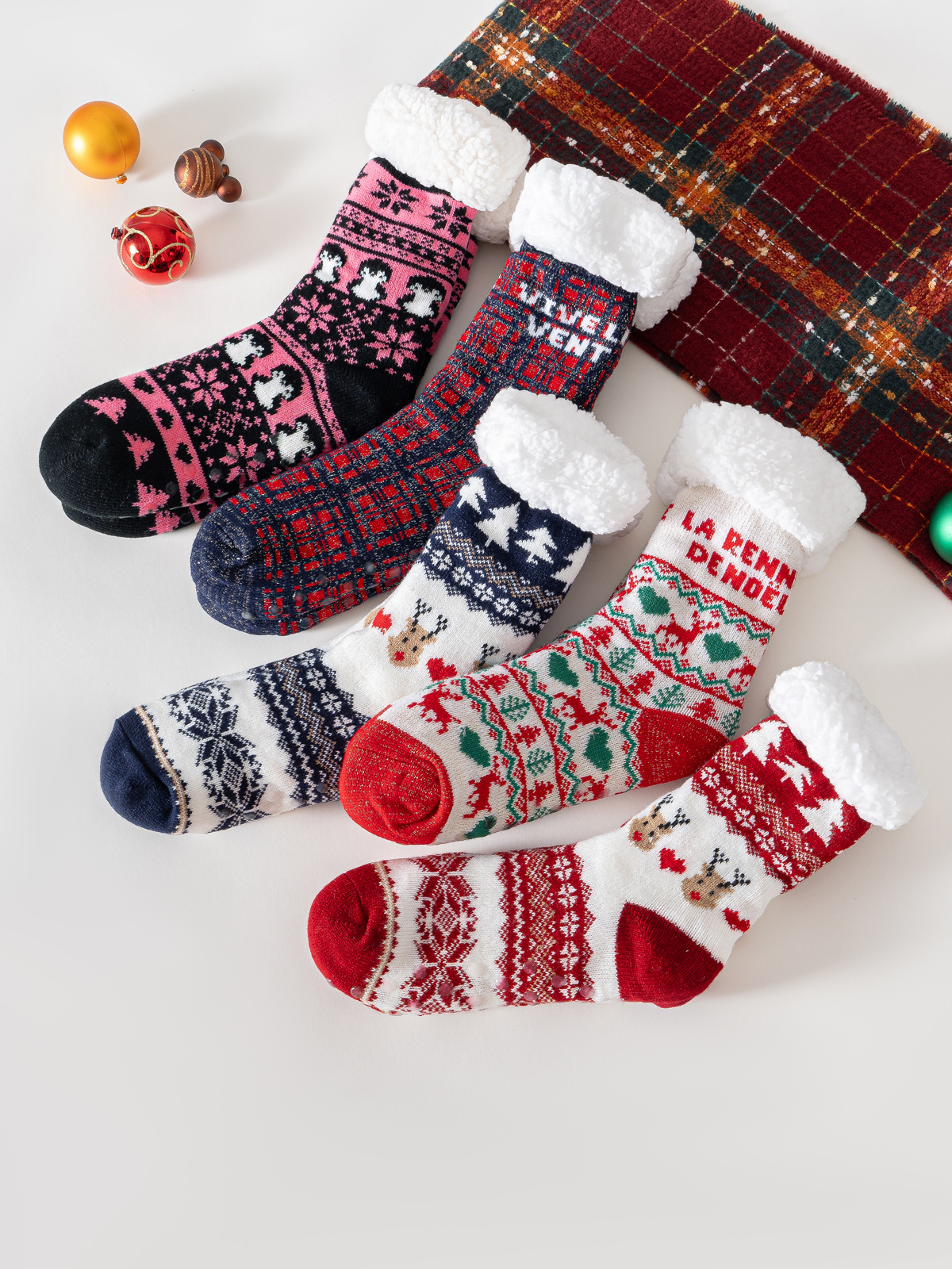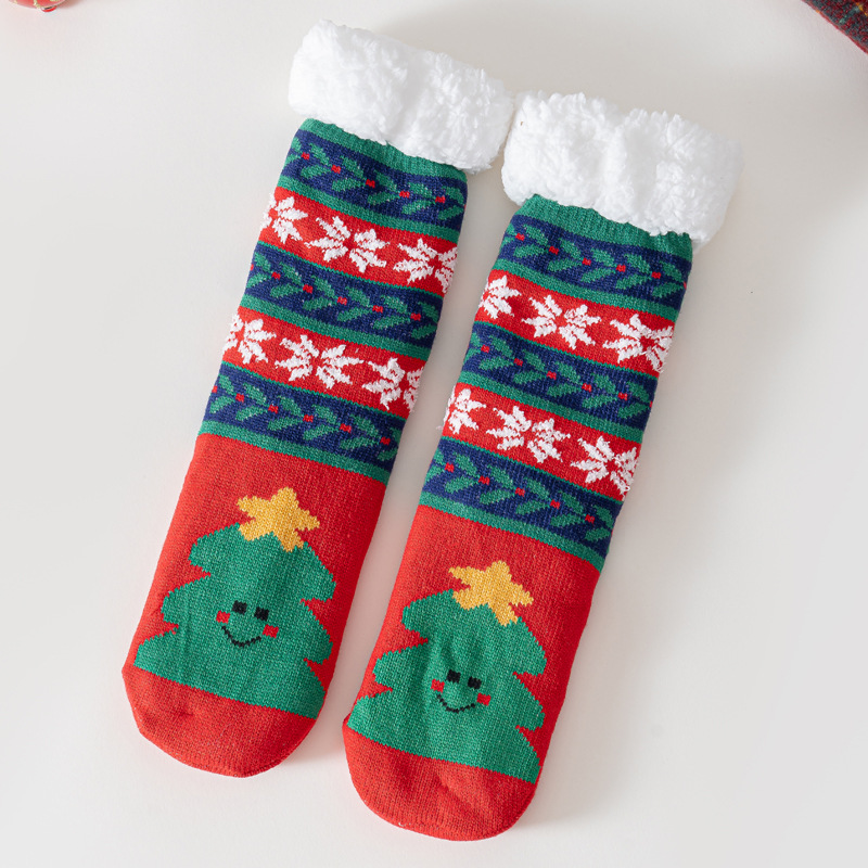 现货外贸圣诞老人麋鹿雪人圣诞树羊羔绒加厚防滑地板袜