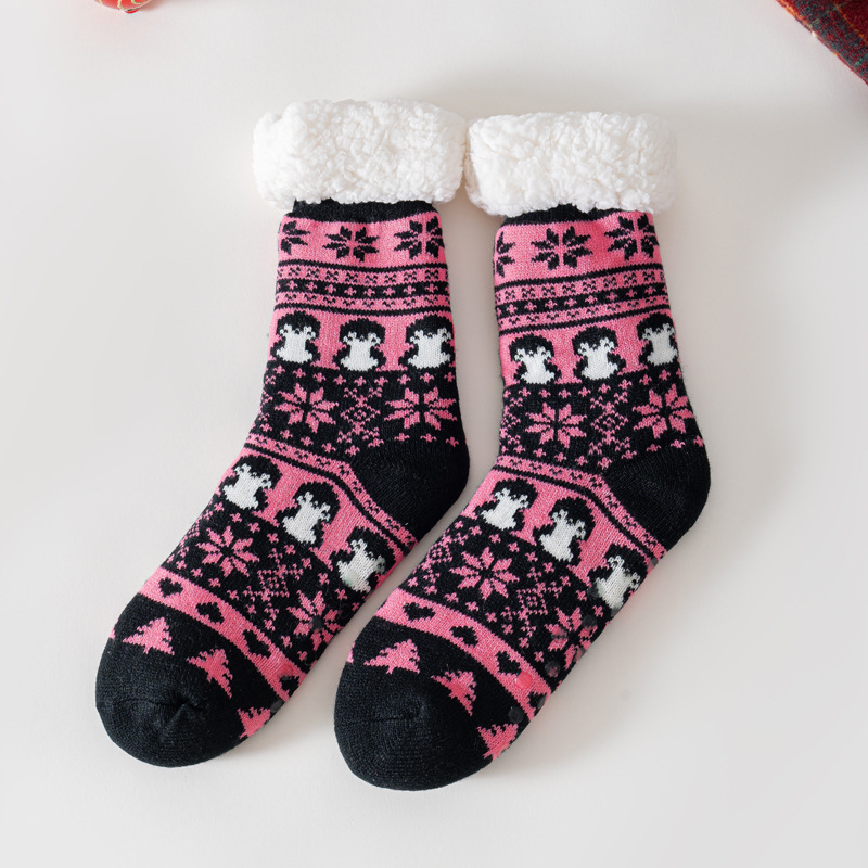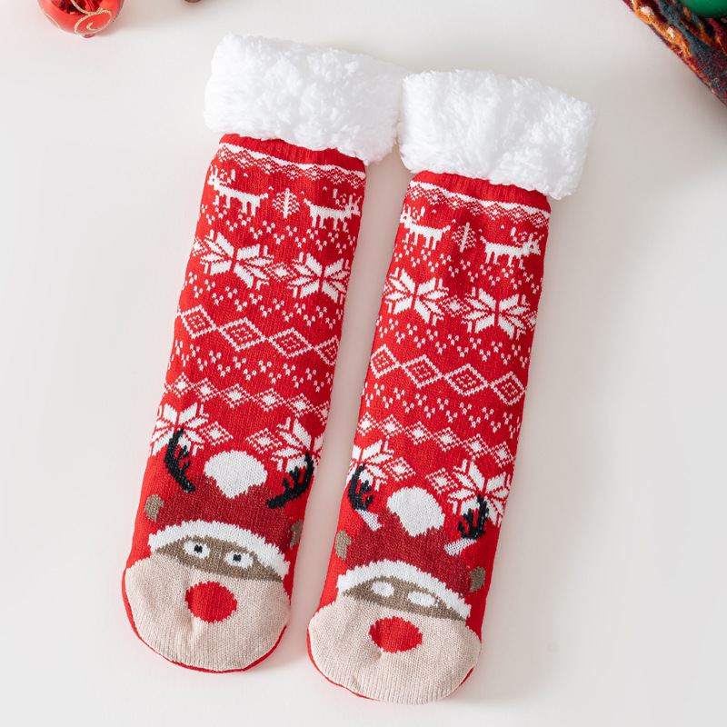 跨境圣诞袜子女地板袜成人冬季加绒雪地袜睡眠袜地毯袜拖鞋袜批发