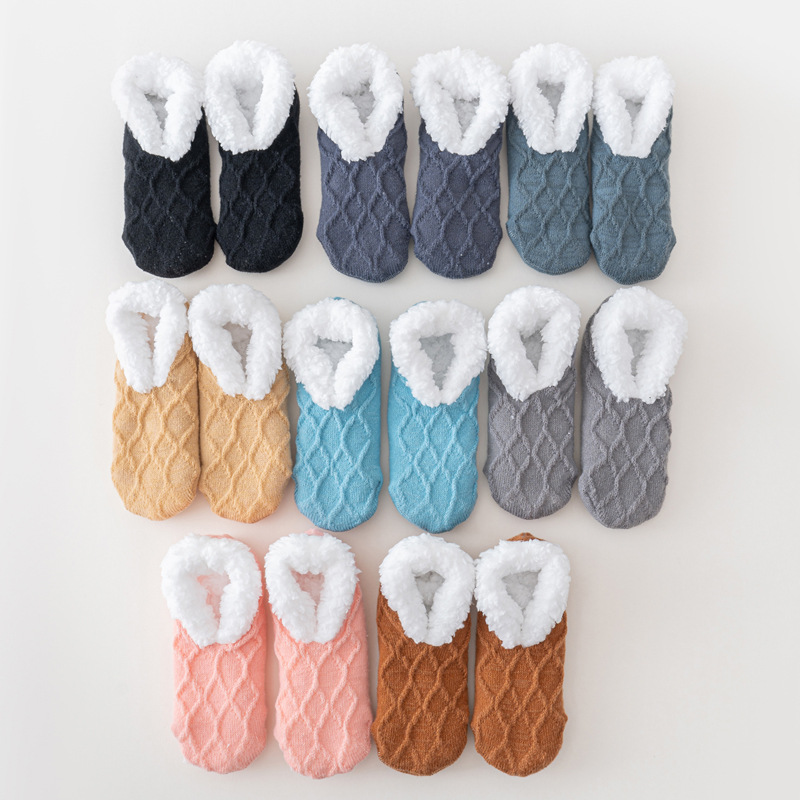 地板袜冬季大人加绒加厚保暖鞋袜女士居家防滑暖脚袜套羊羔绒鞋袜