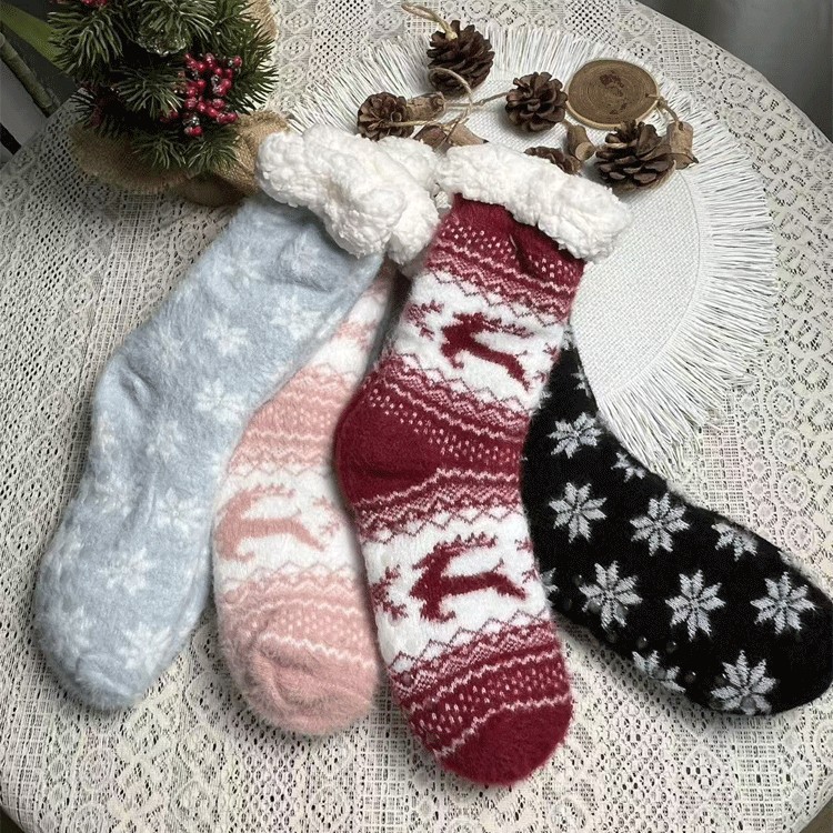 冬の厚いサンゴのベルベットの雪の靴下の子羊のベルベットの睡眠靴下の中筒の床の靴下のクリスマスのプレゼントの靴下