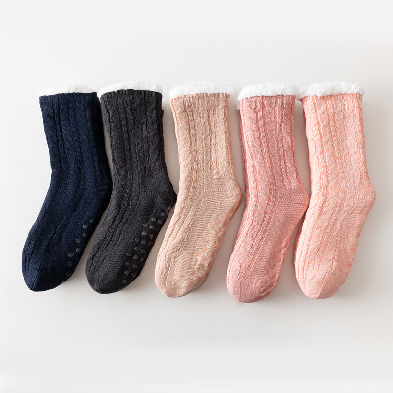 冬用クロスボーダーフロアソックス レディース 無地 厚手 滑り止め シリコンアクリルソックス 10134 保温 タオル底 シリコン底