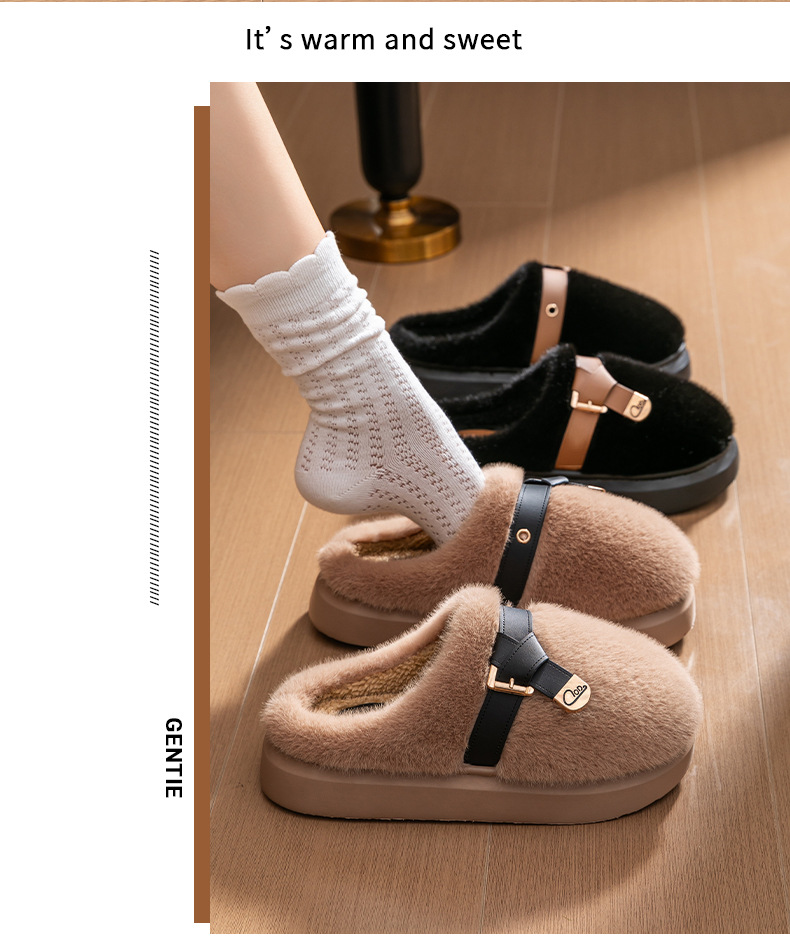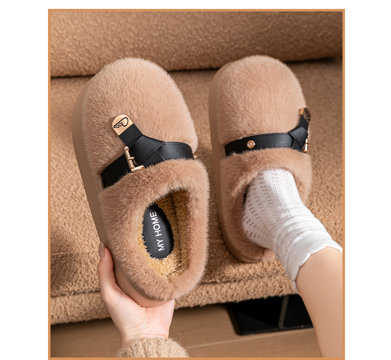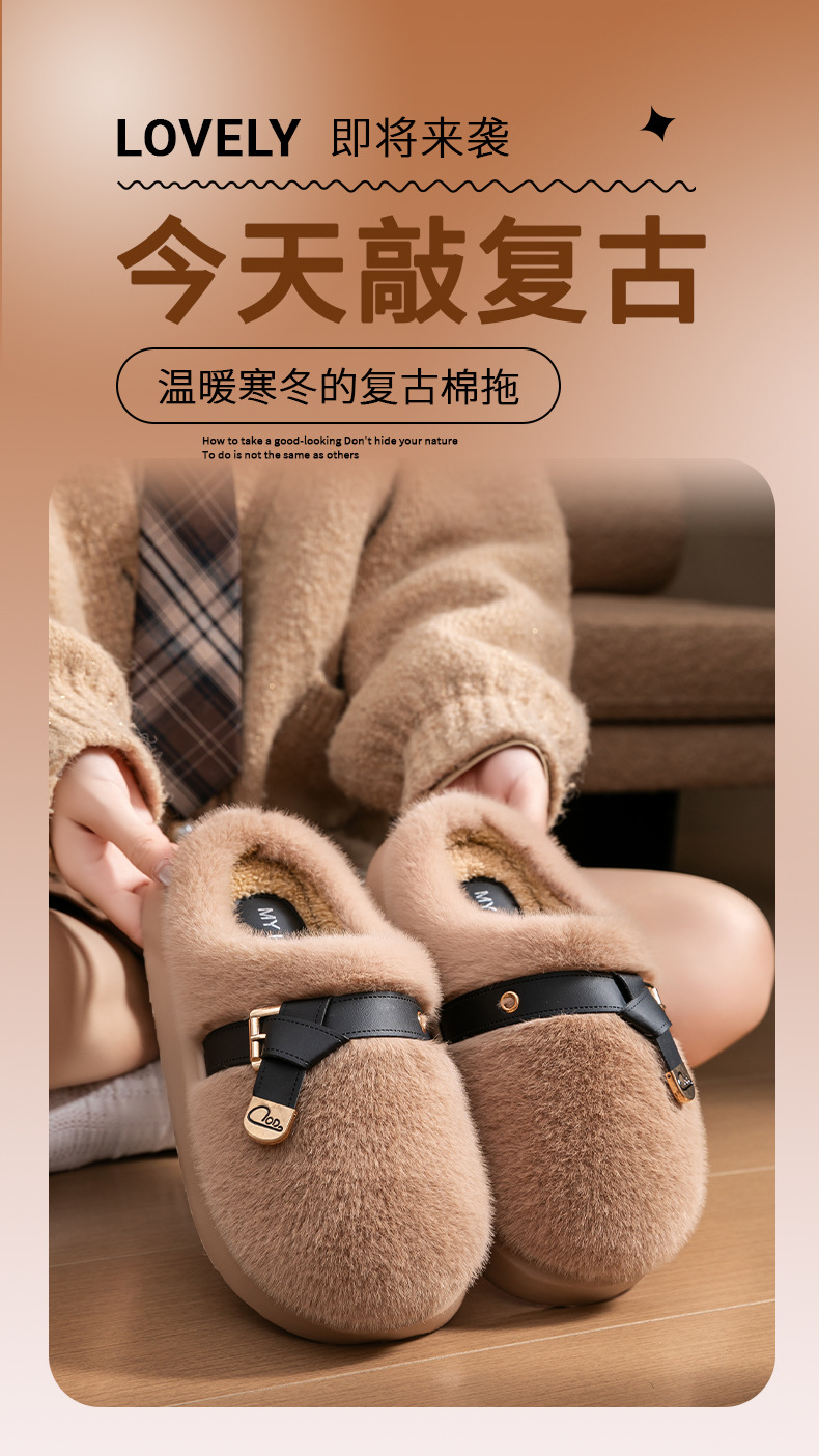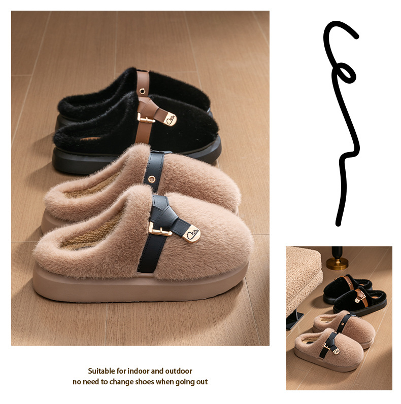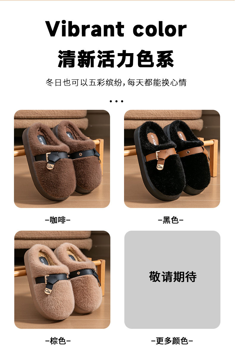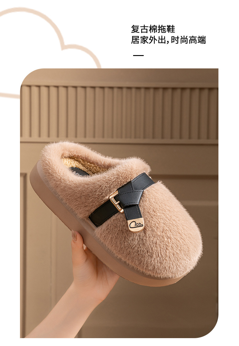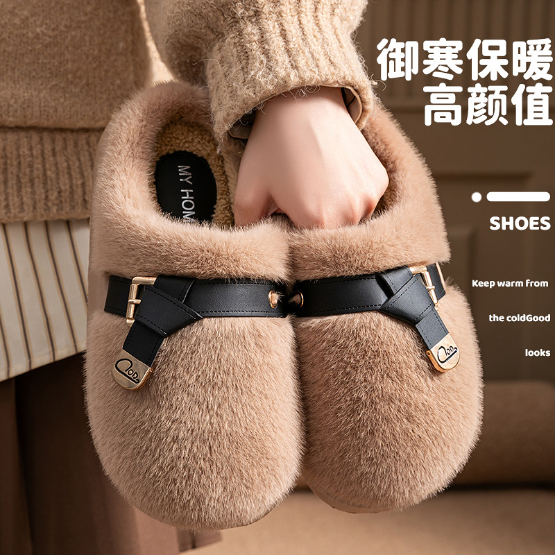 厚底包头毛毛拖鞋女2025秋冬新款韩版时尚皮带扣外穿加绒棉拖鞋女