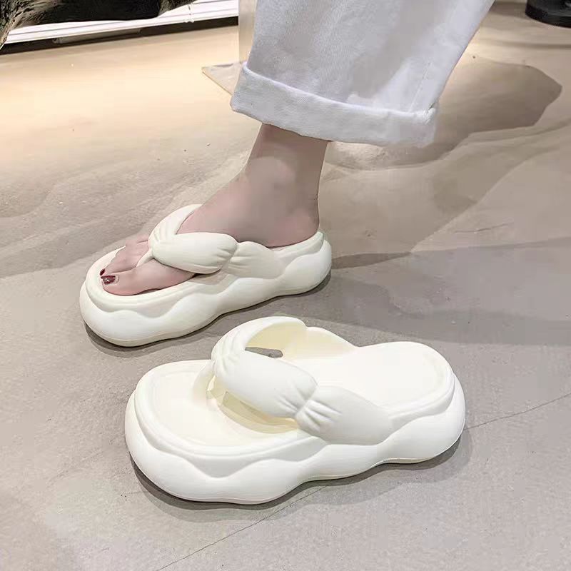 厚い底の人の字を高くして女性の夏の海辺の休暇のEVAの厚い底の砂浜のファッションの滑り止めの松餅の冷たいスリッパを引っ張ります。