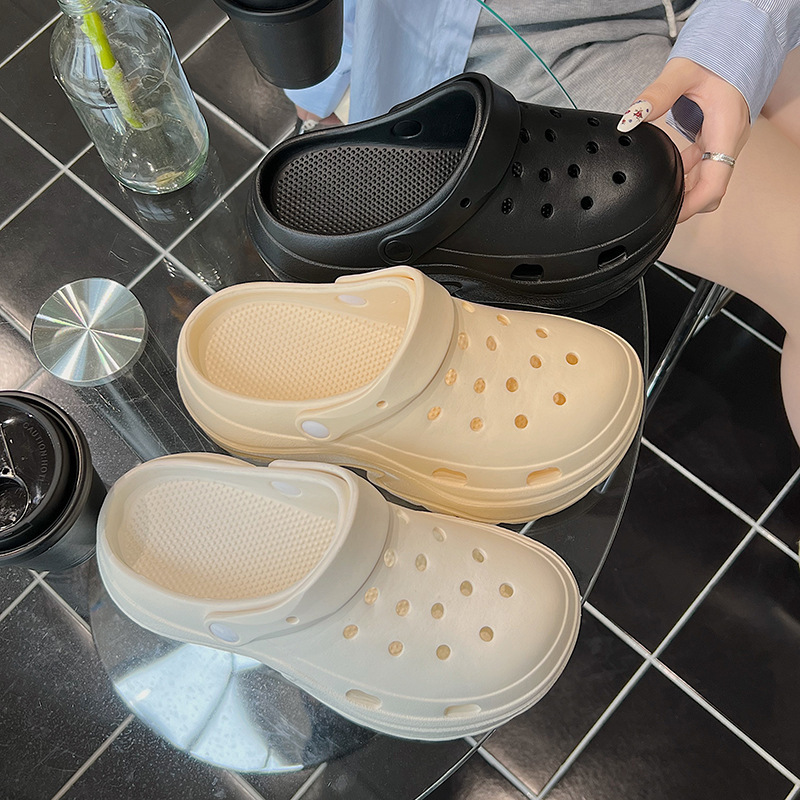 新しい通気性の女性は2025夏evaを着て糞感の厚い底のビーチサンダルを踏んで防臭して穴の靴を高くします。
