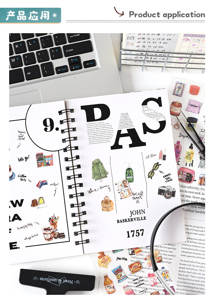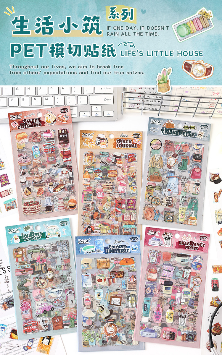 生活小筑透明防水pet贴纸diy手账日记贴画跨境复古物件装饰贴纸