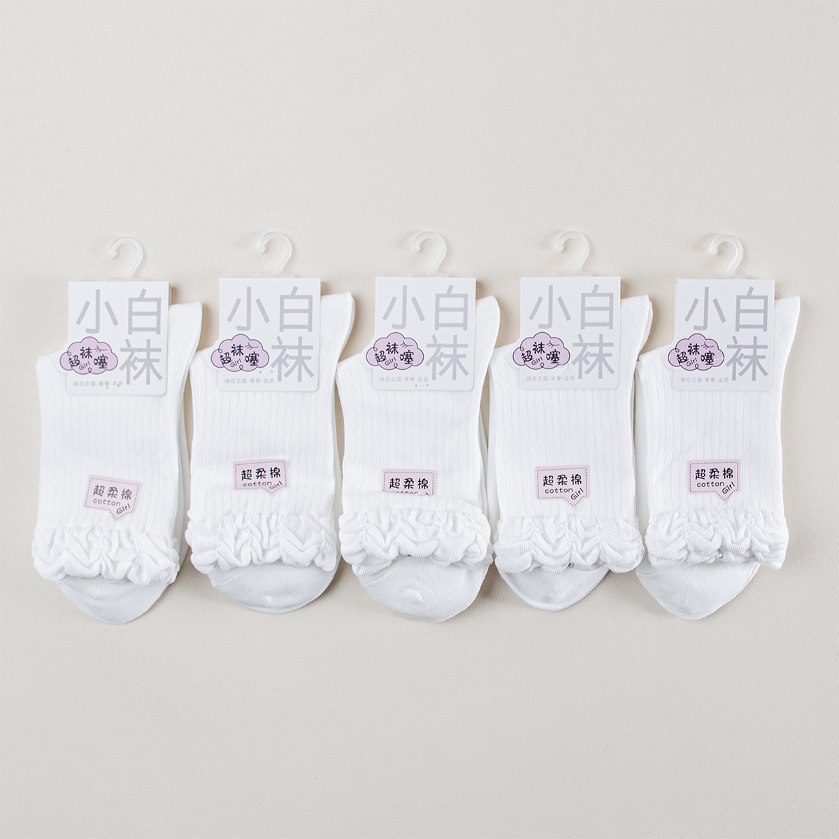 绵花王国白色袜子简约百搭木耳边纯色小白袜中筒袜棉袜可爱洛丽塔