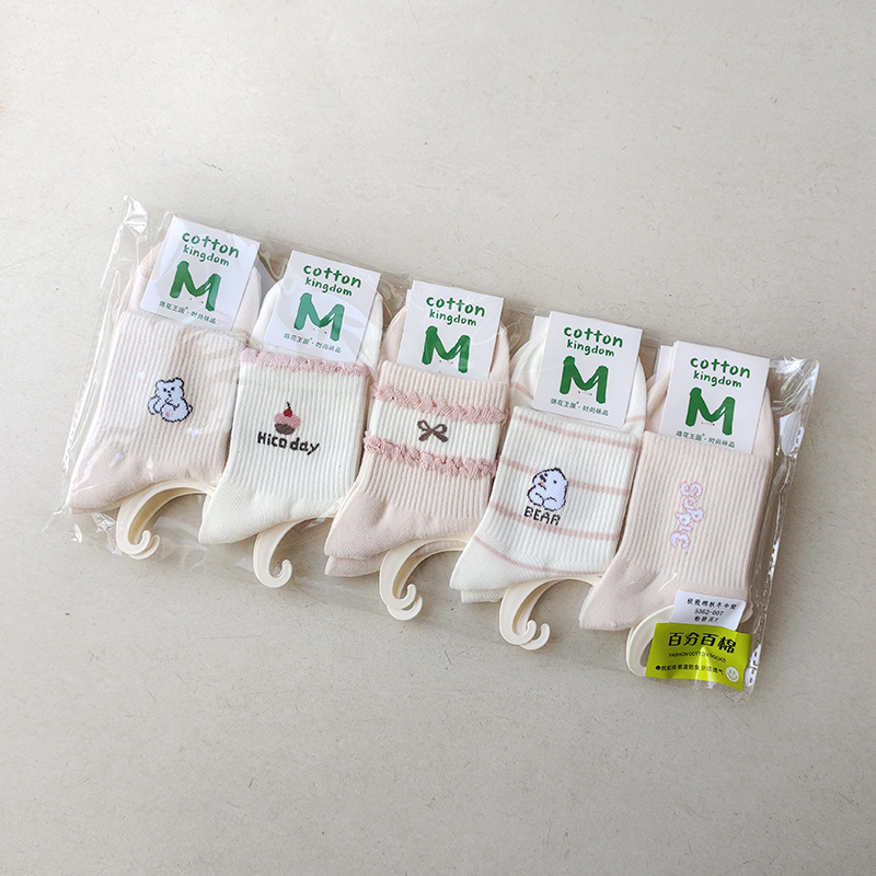 绵花王国秋冬款新款女士中筒袜卡通女袜日系学院风韩版学生棉袜子