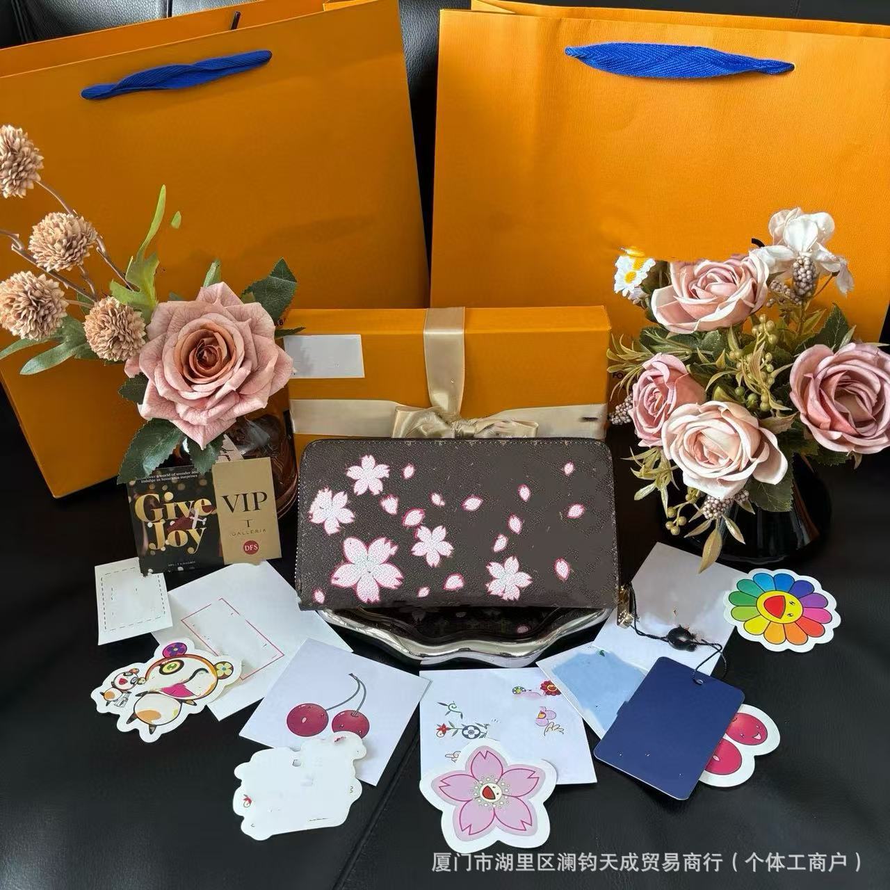 跨境vip gift樱花联名款外贸女士手拿包可收纳零钱包多功能卡包