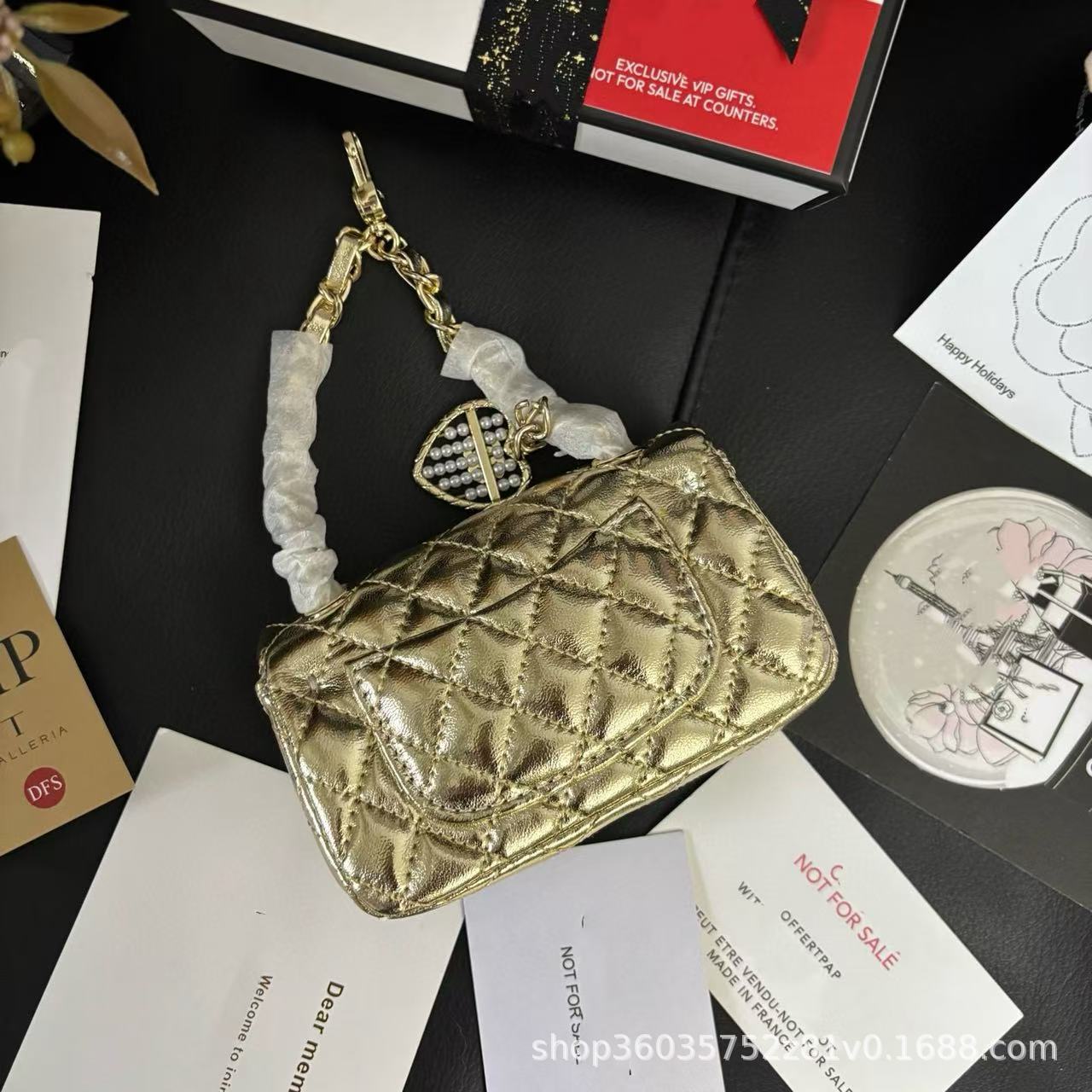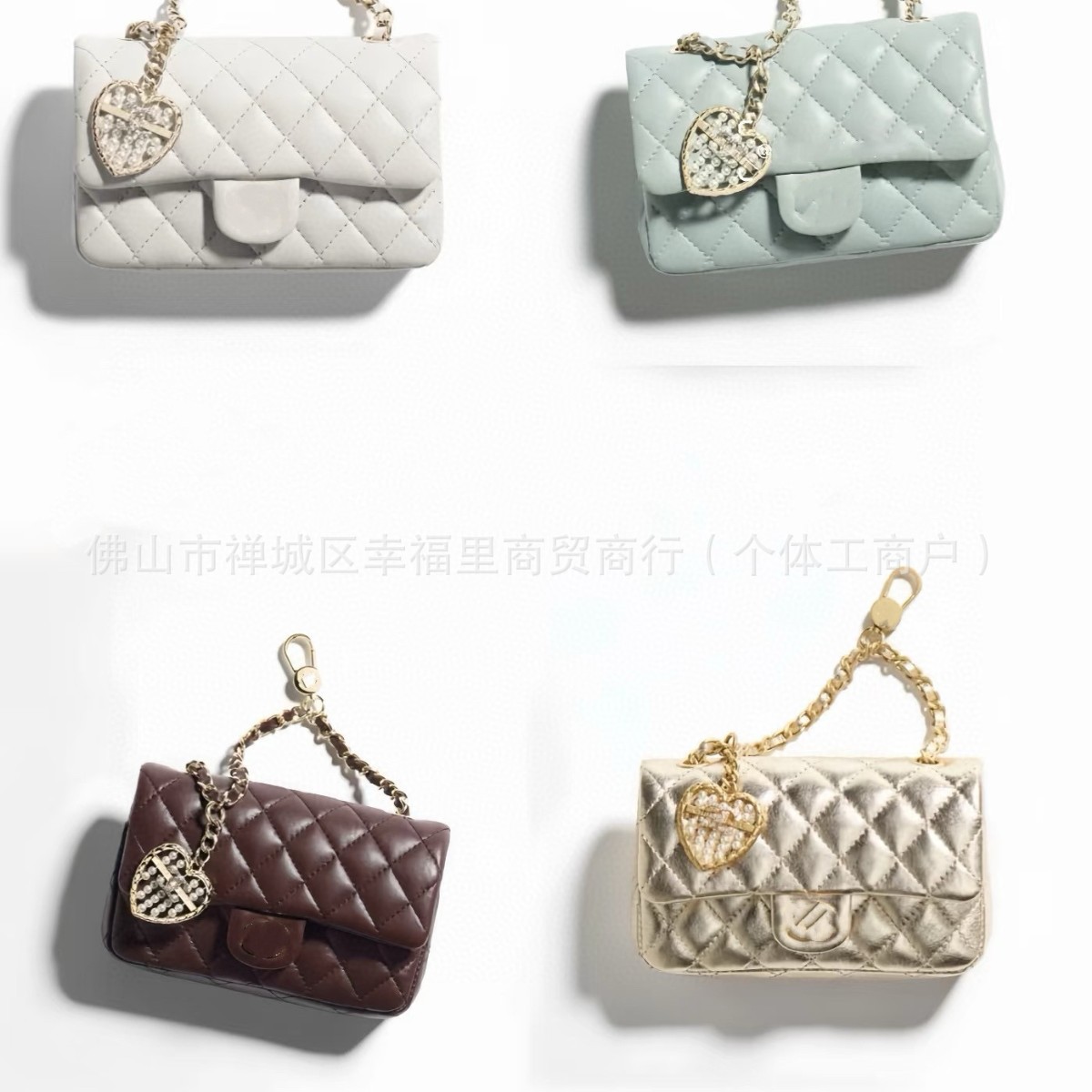 2025新款C家25A真皮超mini CF挂包挂件小包爱心珍珠挂