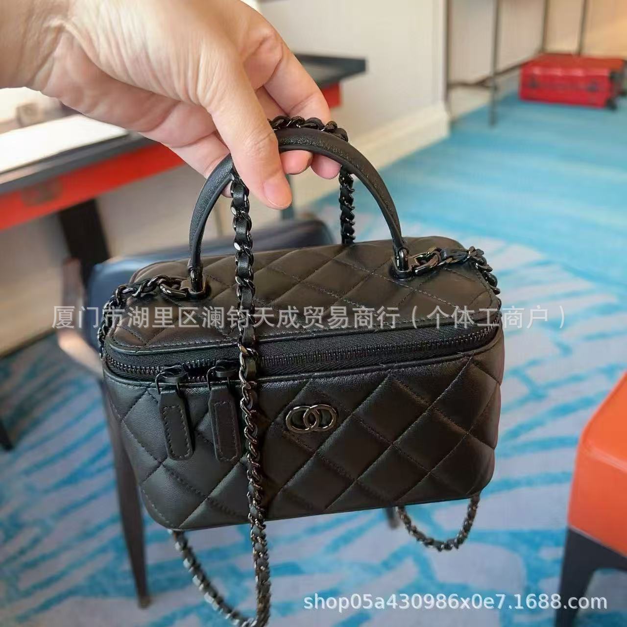 高级黑black真皮手提化妆盒子斜挎链条欧美时尚盒子包