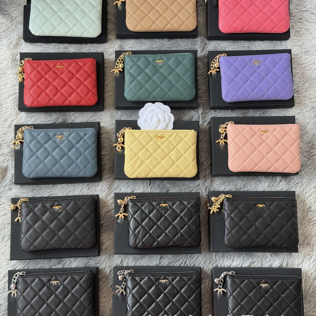 高品质爆款吊坠小香风真皮鱼子酱卡包菱格随身百搭潮流短款钱包