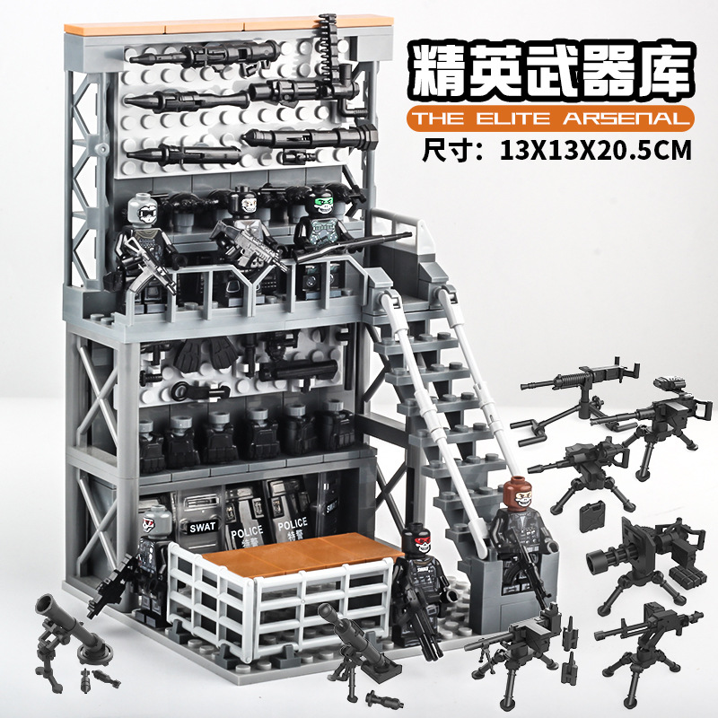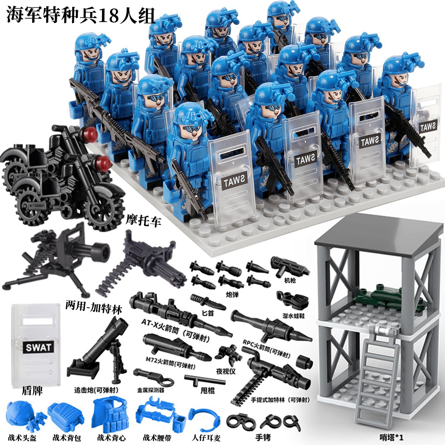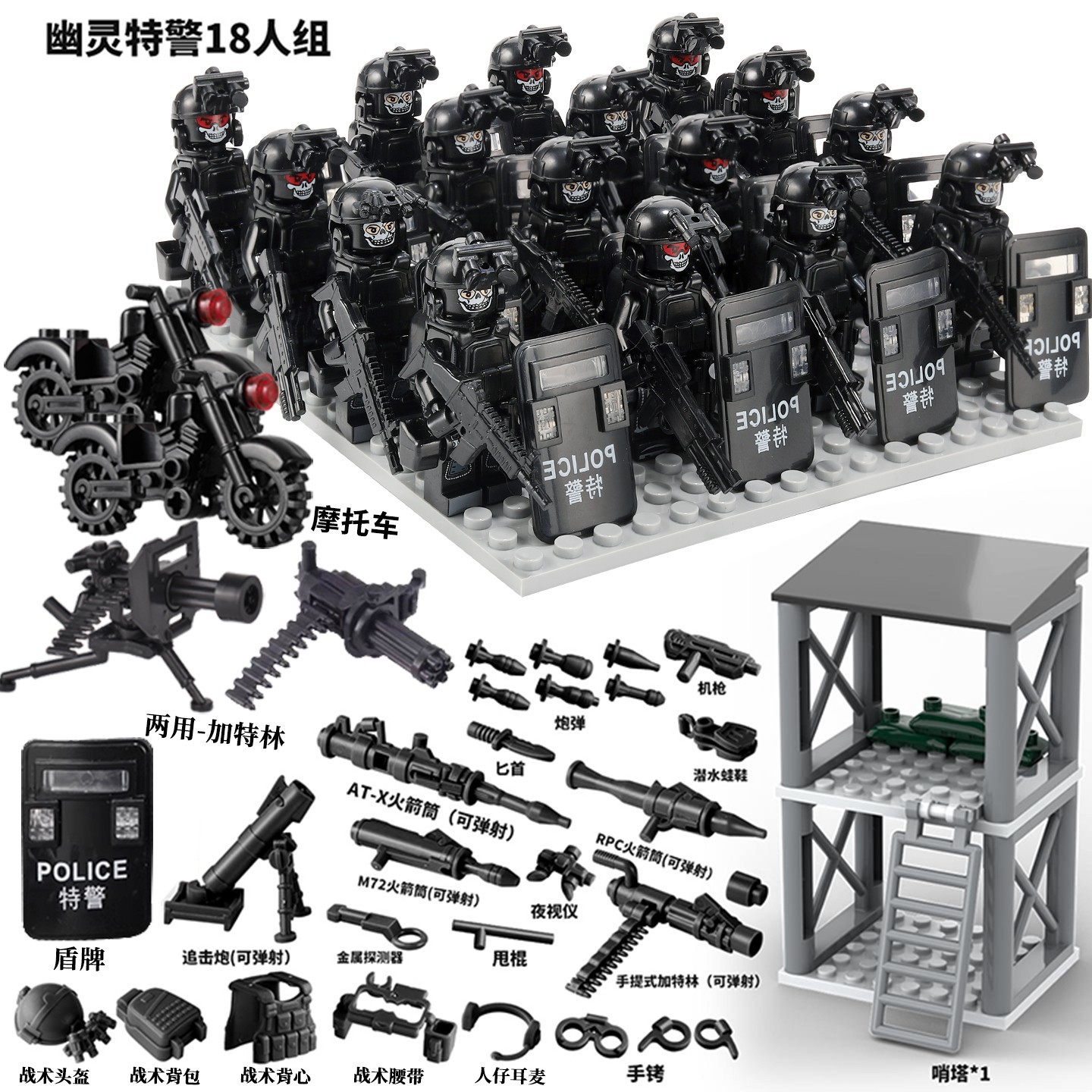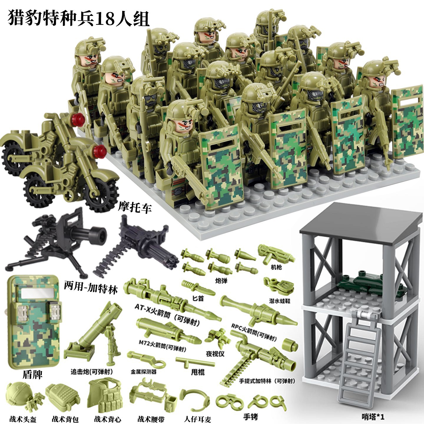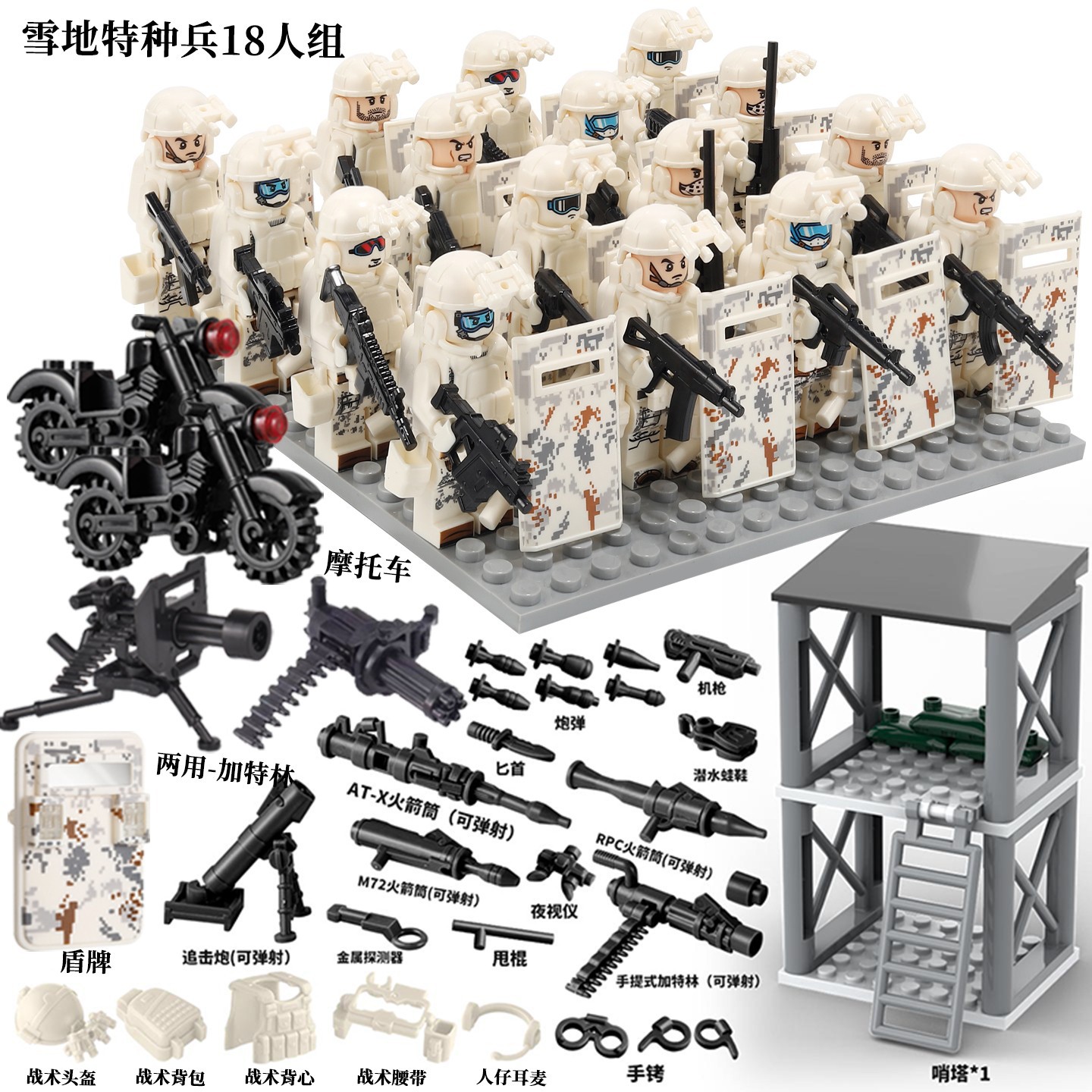 适用乐高军事人仔特种兵基地哨塔警察小人偶武器男孩拼装积木玩具