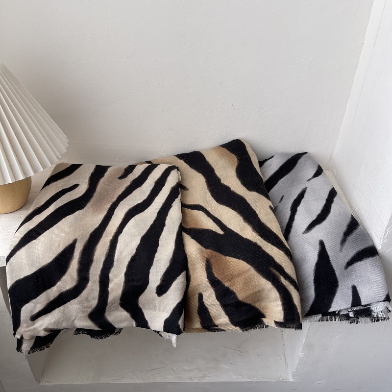 斑马纹亲肤绒围巾女韩版百搭长款大披肩秋冬季双面加厚保暖围脖