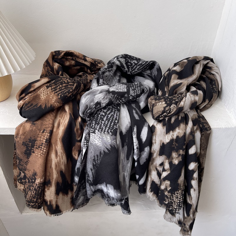 豹纹围巾女秋冬季韩版百搭双面亲肤绒加厚保暖围脖长款两用大披肩