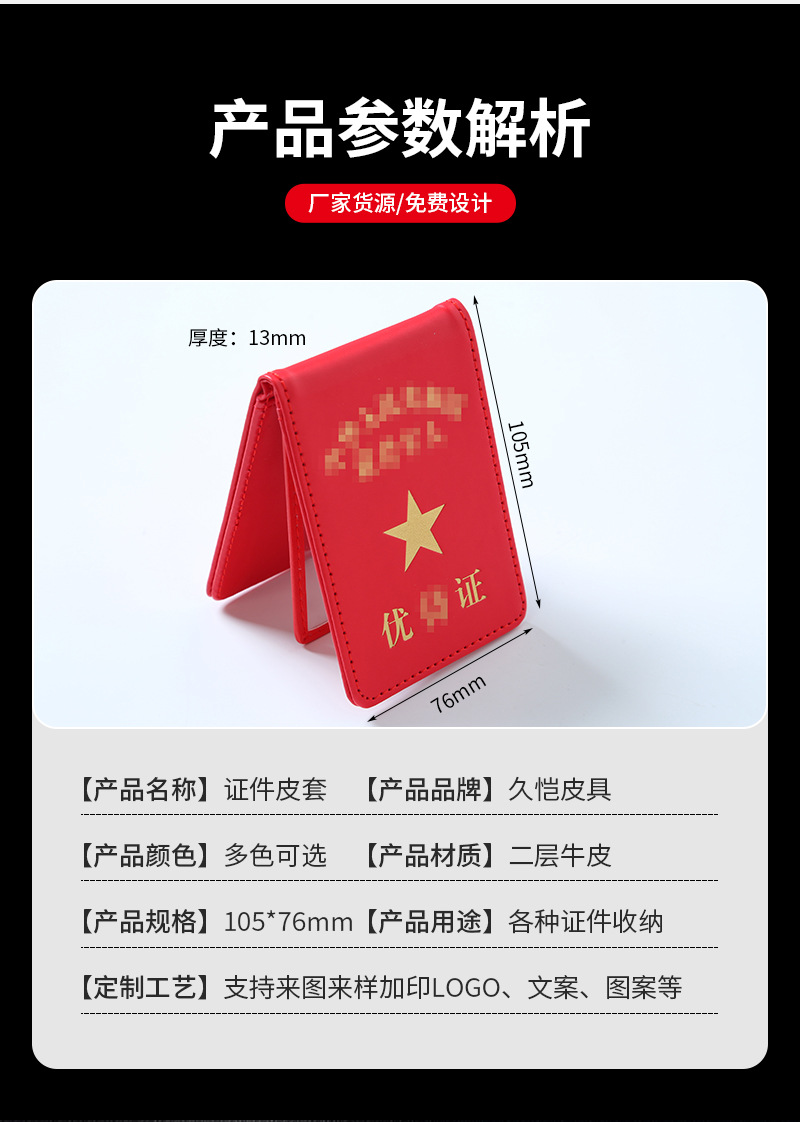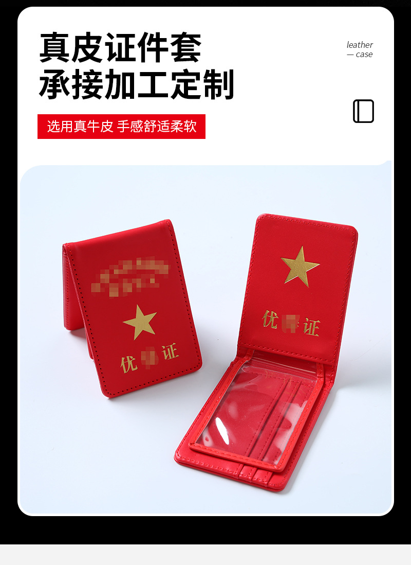 源头厂家真皮五角星尤待证卡套工作证皮套高档证件保护套牛皮卡包