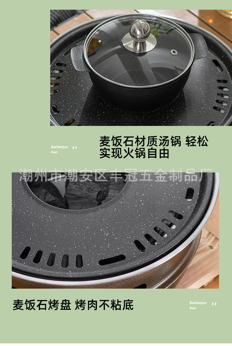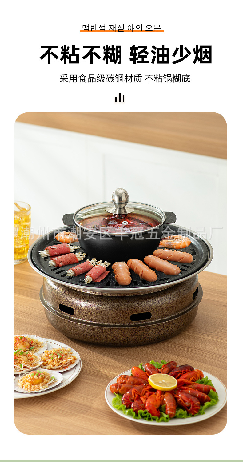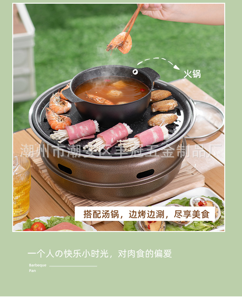 加厚火锅烧烤盘家用煎涮烤肉火锅一体无烟烧烤多功能户外碳烤炉