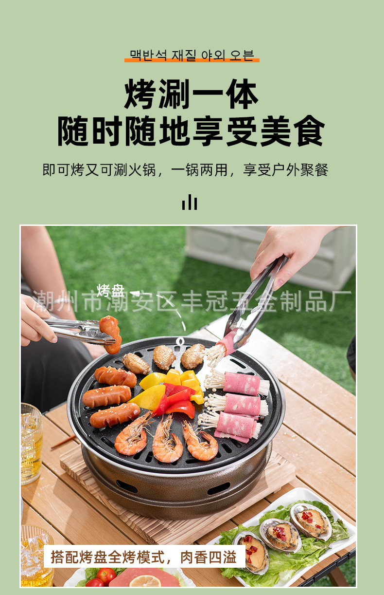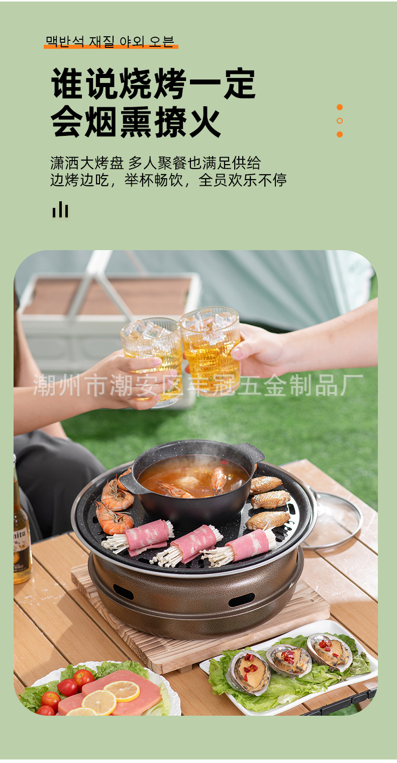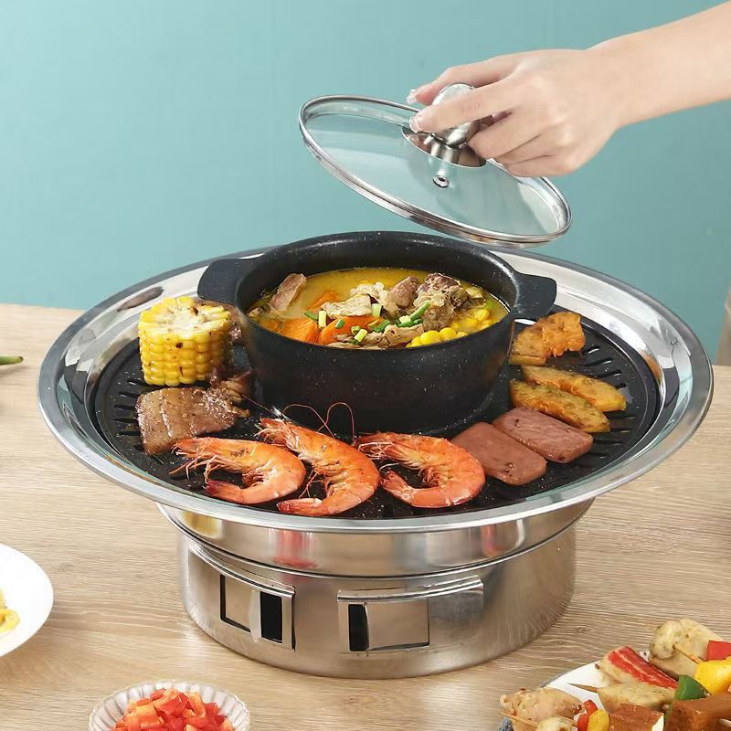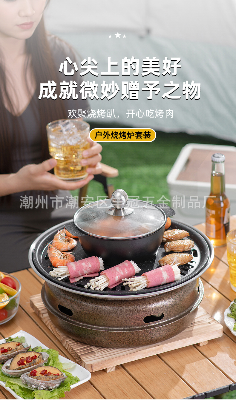 加厚火锅烧烤盘家用煎涮烤肉火锅一体无烟烧烤多功能户外碳烤炉