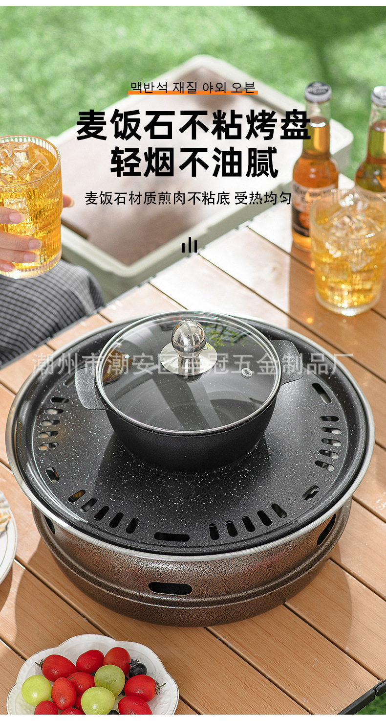 鍋の厚いバーベキュー皿家庭用のしゃぶしゃぶ焼肉一体鍋の無煙焼き炉多機能屋外炭焼き炉