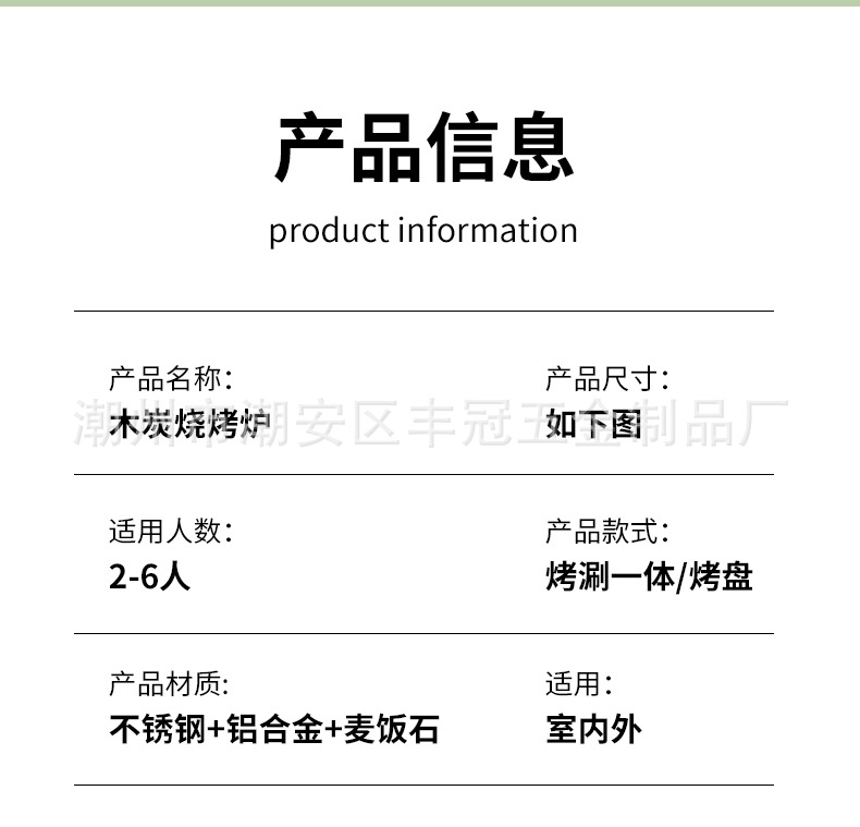 功能 多功能,便携,无烟,防风,可拆卸,防锈,不粘
