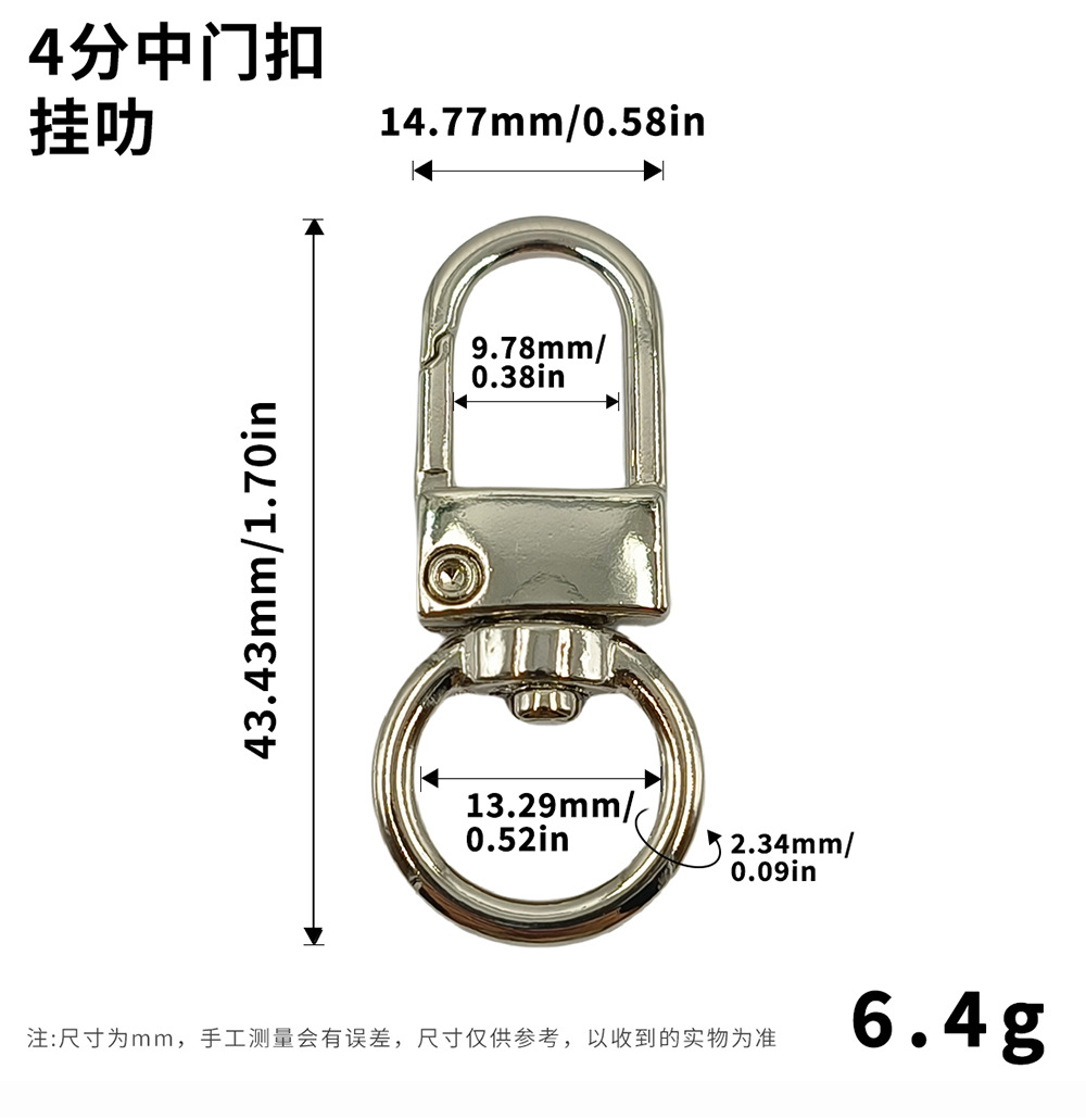 厂家现货4分中门扣锌合金礼品钥匙狗扣箱包电镀五金DIY配件钩扣
