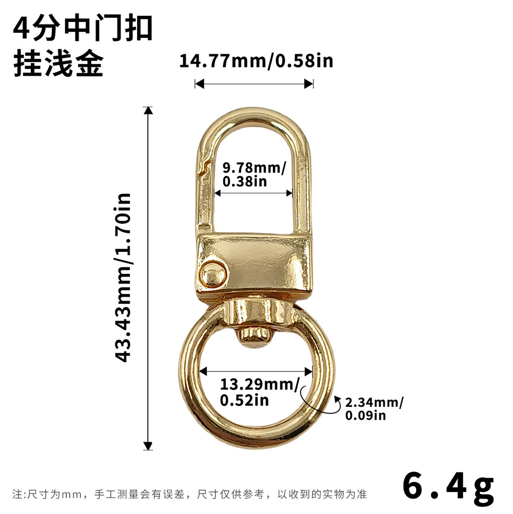规格 4分浅金色挂镀合金中门扣,4分叻色挂镀合金中门扣