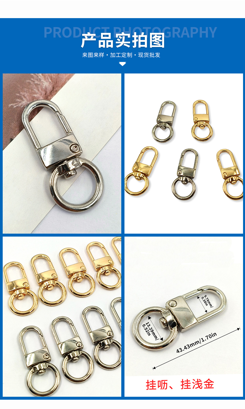 厂家直销批发锌合金门扣宠物钥匙金属箱包挂钩压铸现货饰品配件