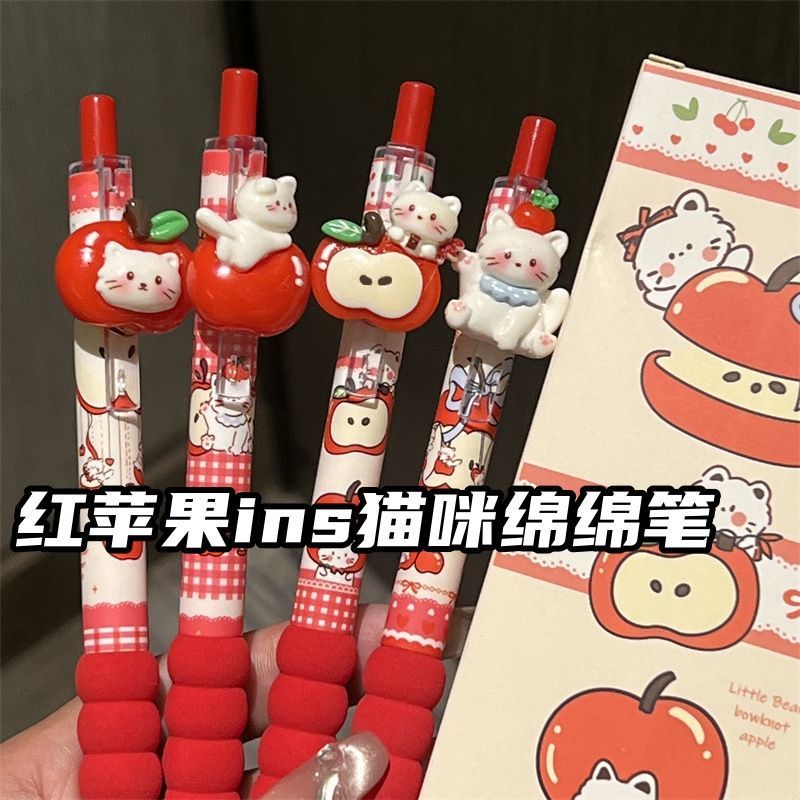 レッドアップルキャットペンダントペンインスタイル高価値0.5ガーリーハートプッシュ式STヘッドブラックブラシペン