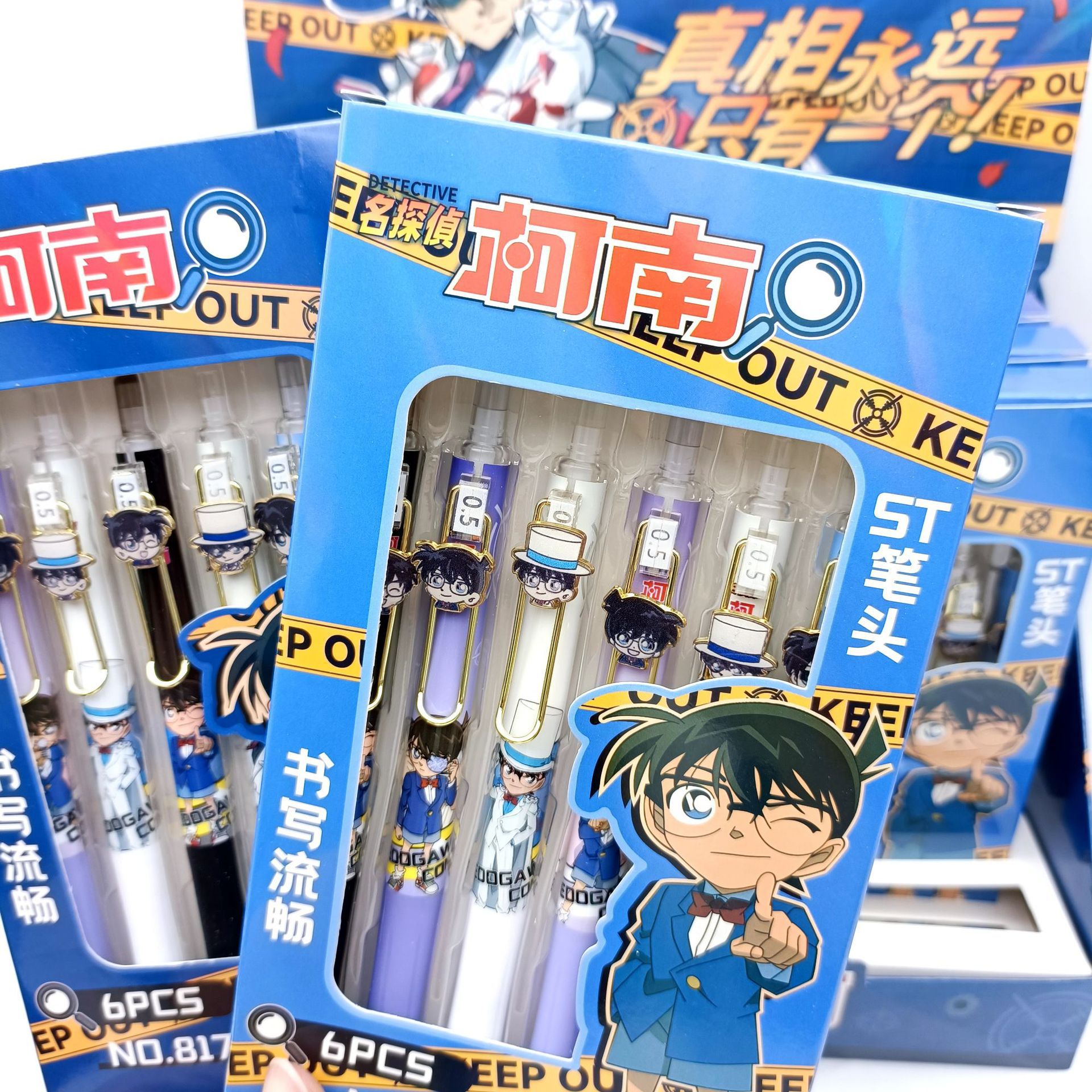 新商品名探侦コナンブラインドボックスプッシュペン漫画漫画漫画ニュートラルペン0.5mm学生ブラシ质问水ペン卸売