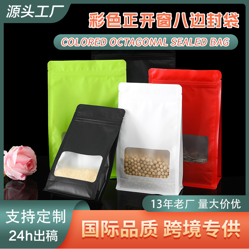彩色镀铝正开窗八边封袋猫粮狗粮宠物食品袋茶叶咖啡豆密封包装袋